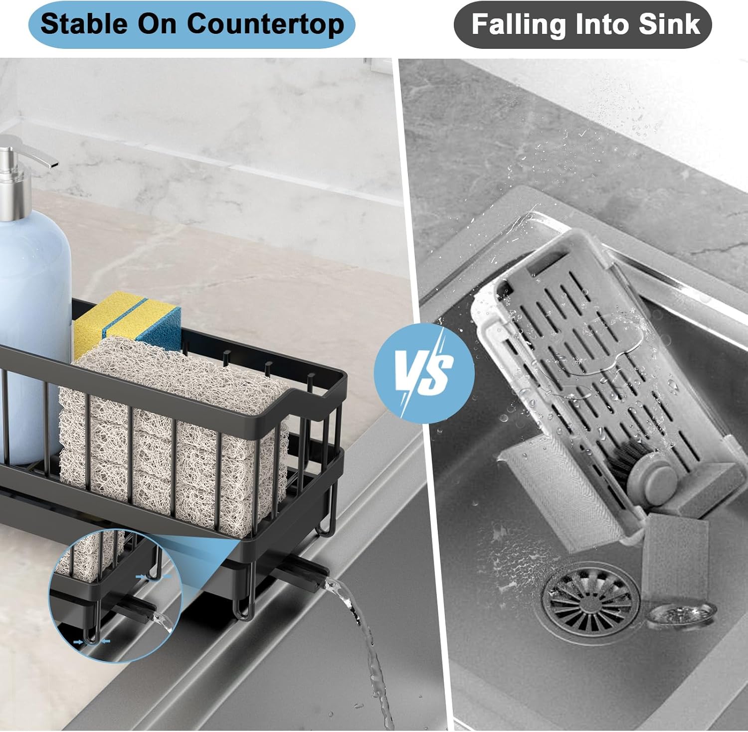 - STABLE ON COUNTERTOP: Sink tidy has a sturdy bottom anti-slip design, effective in preventing sliding. When used on a small sink, it can show the advantages of this product