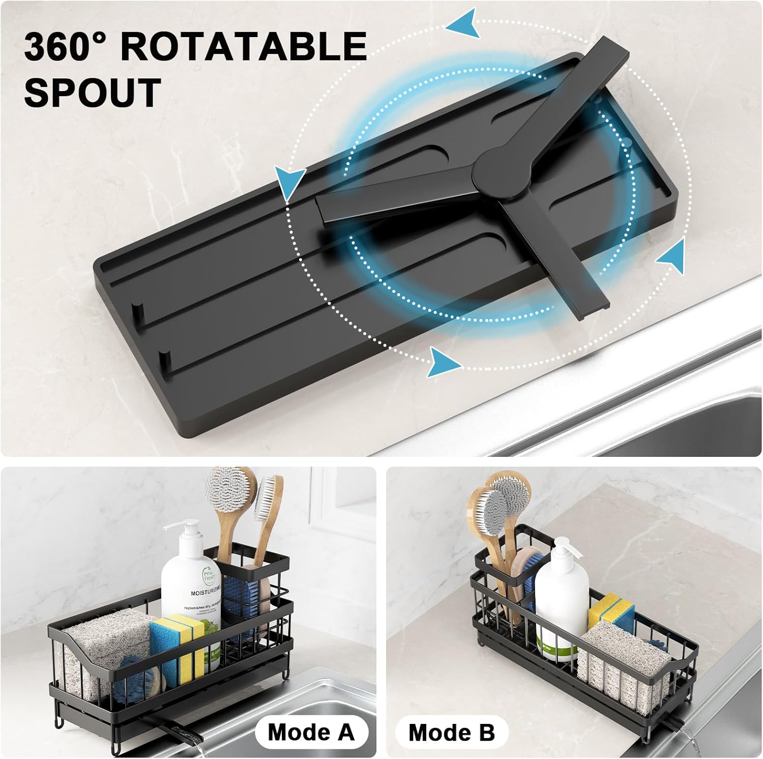 - EFFECTIVE DRAINAGE: Sponge holder drainage channel comes with a rotatable spout that swivels in three directions, spout rotates smoothly, allow adequate airflow for drying, keep sponges dry and odor-free