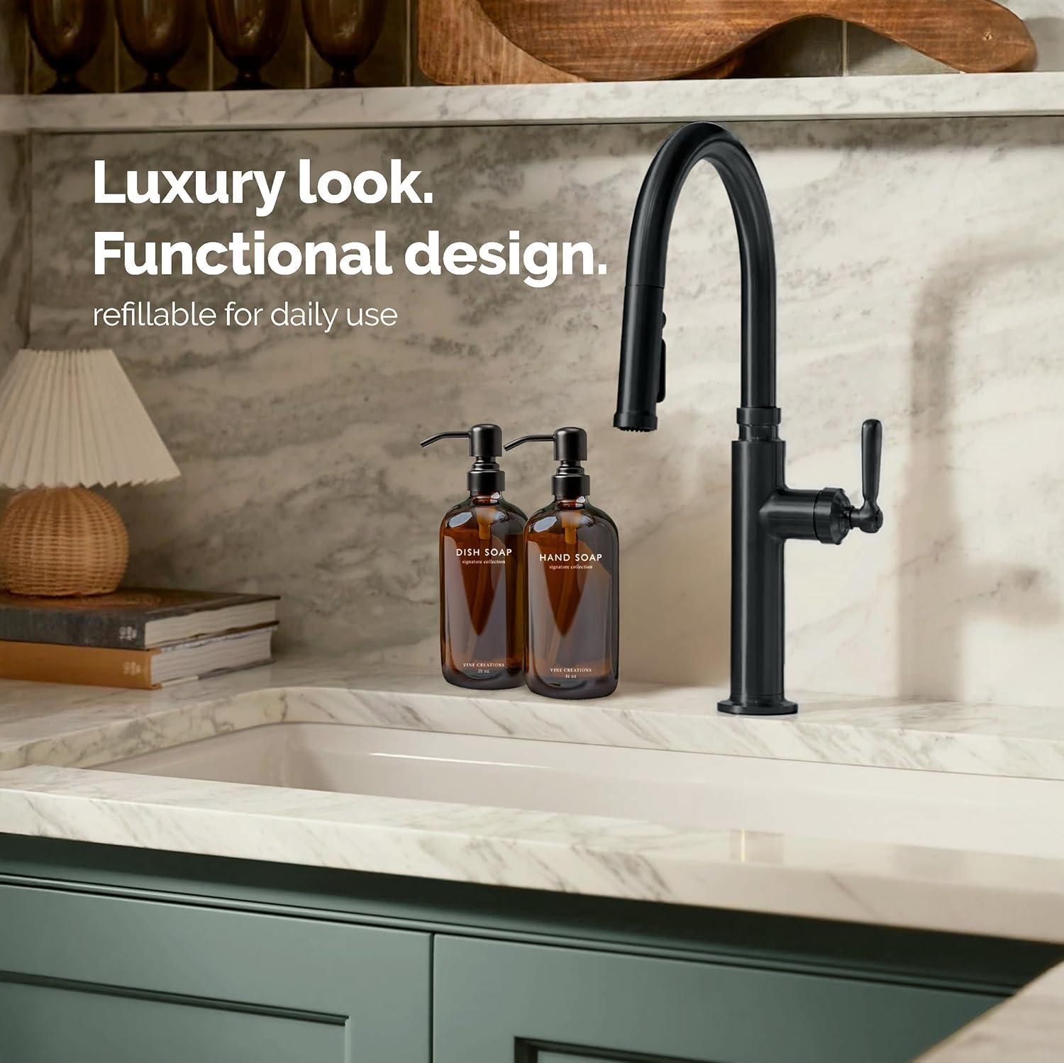 - STYLE YOU CAN FEEL β Heavier than standard dispensers, this hand and dish soap dispenser set of 2 brings substance and sophistication to your countertop. Built to last and made to impress.