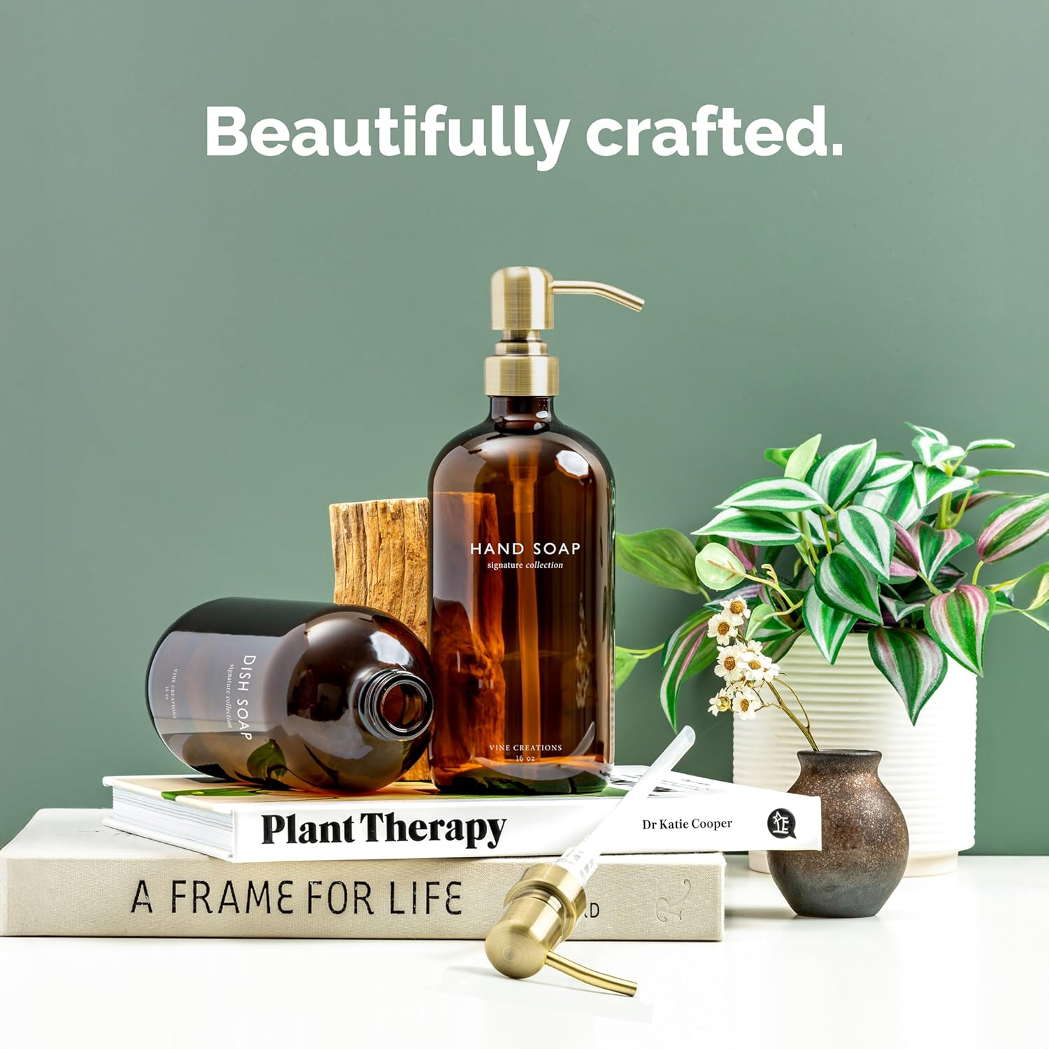 - BUILT TO PERFORM β Each dispenser is topped with a brushed brass stainless steel pump thatβs as durable as it is refined. Rust-resistant, smooth to use, and designed to complement any modern kitchen or bathroom.