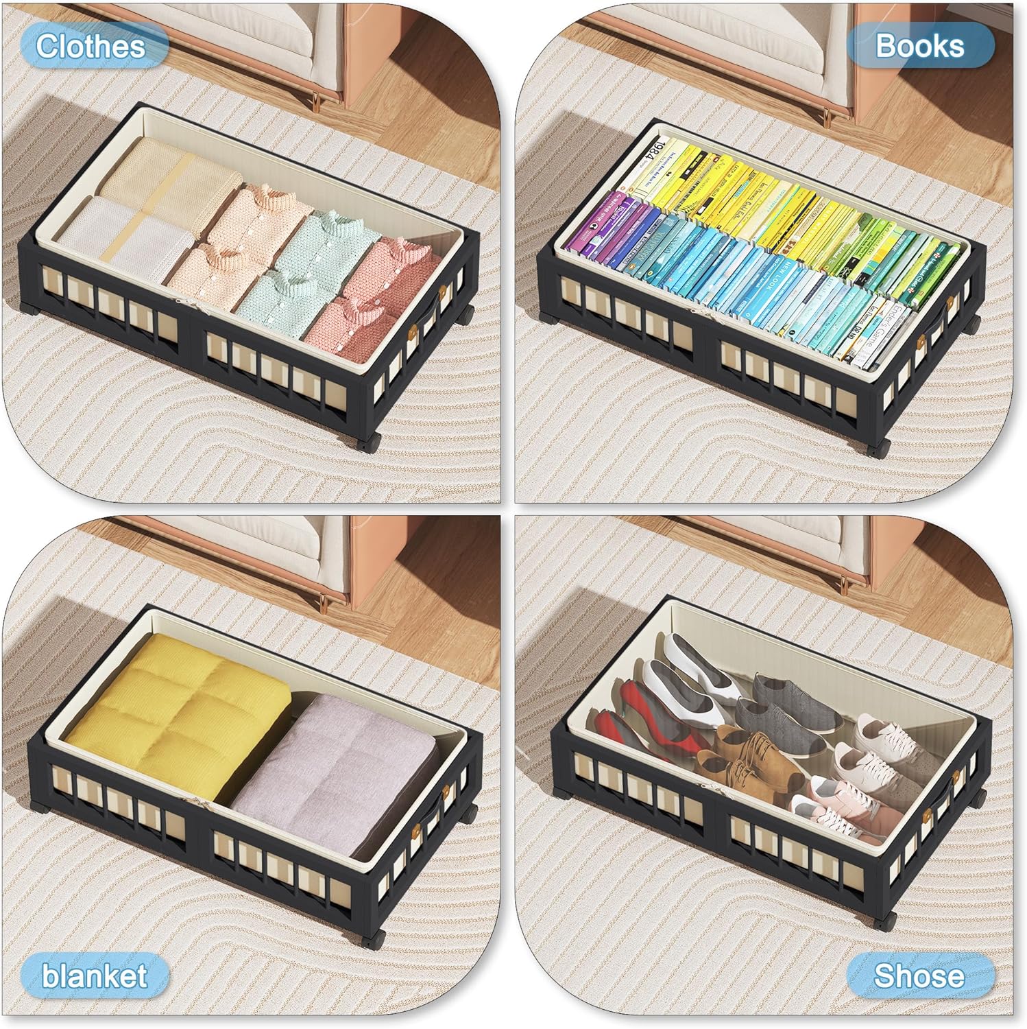 - 【Sturdy Leather Handle】 The under-bed storage basket features a leather handle, making it easy to pull out from under beds, sofas, or tables. The durable leather ensures a comfortable grip and smooth handling.