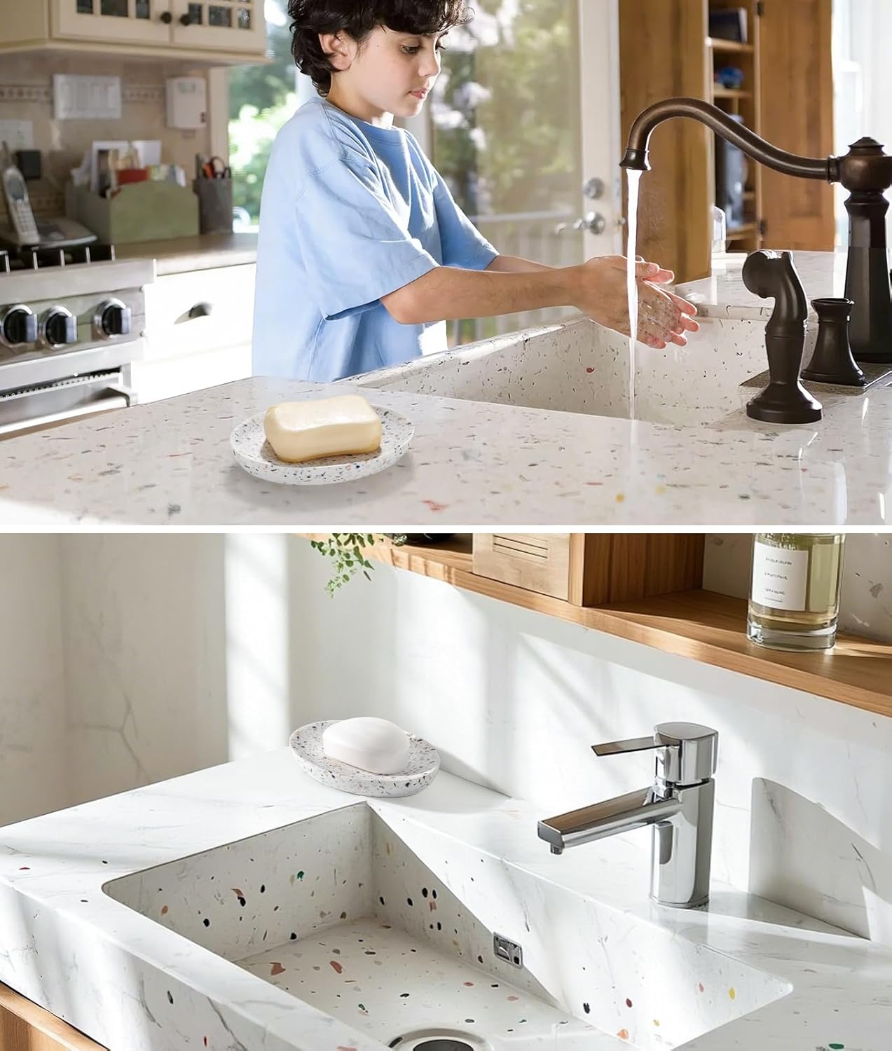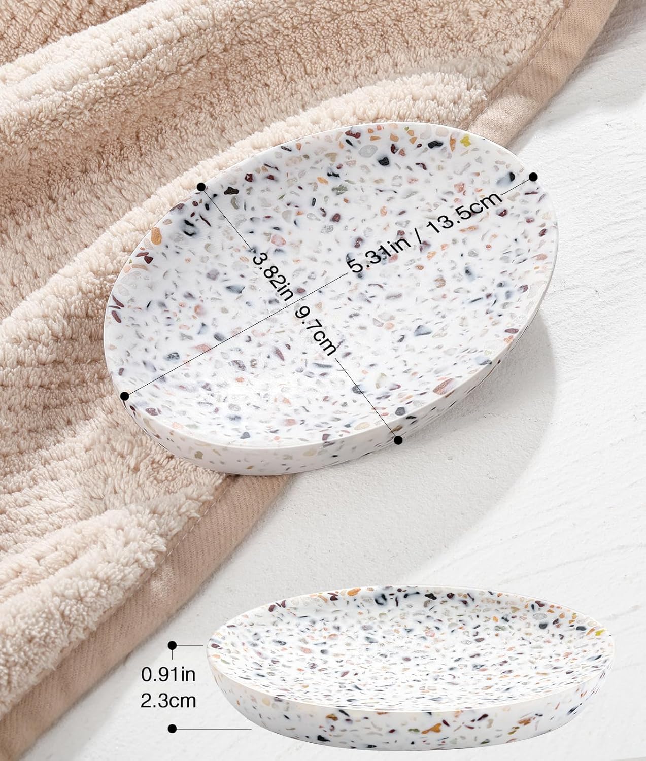 Luxspire Soap Dish, Resin Soap Tray Soap Holder Container Box, Oval Soap Plate Case, Non-Slip, Multi-Purpose Soap Holder, Bathroom & Kitchen Countertop, Terrazzo