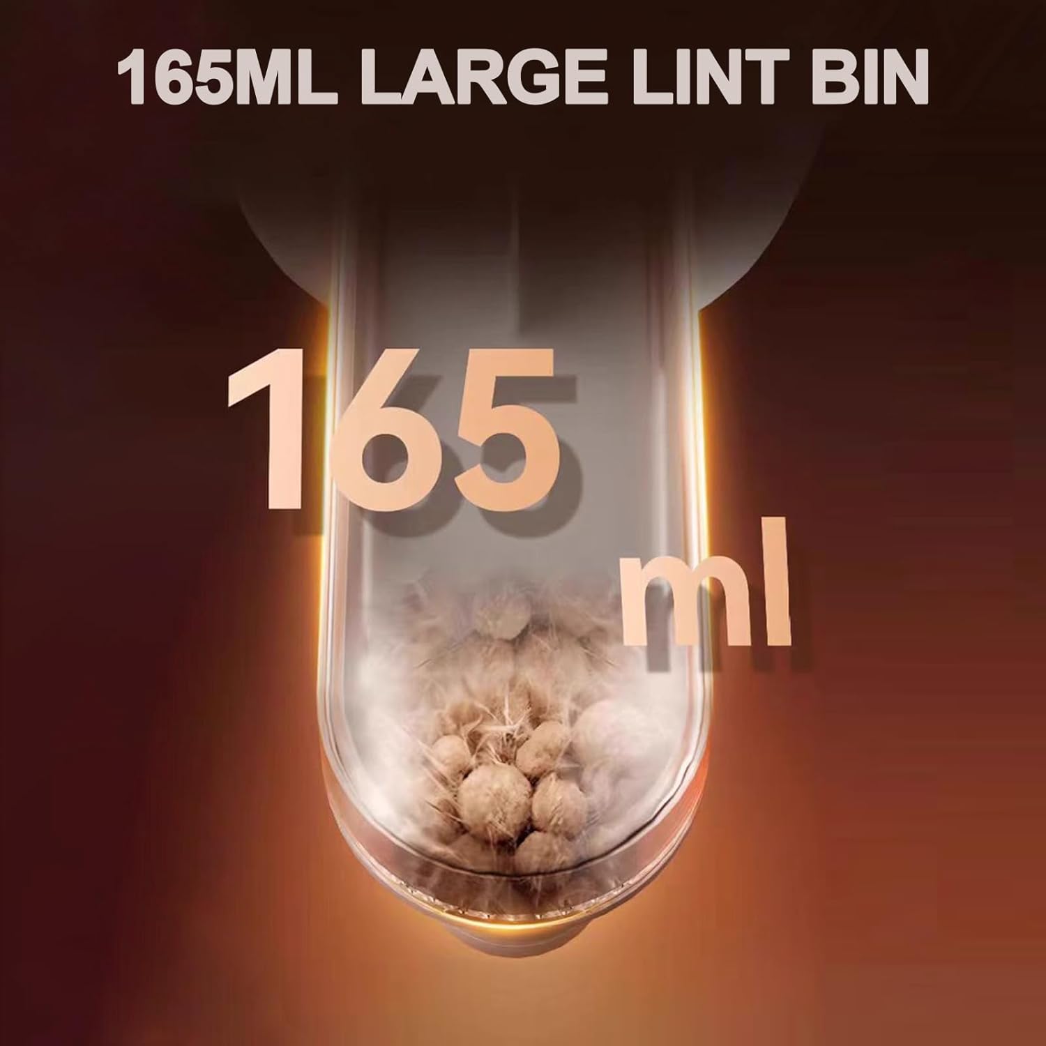 - 【Intelligent Security Protection System】Rechargeable fabric shaver equip with a 3D curved mesh cover,It has up to 288 mesh holes. Twin turbocharging, maintains a safe distance between fabric and blades with the suck-shave technology, at the same time, the cut cotton wool is sucked into the 165ML large lint container without splashing around. When the mesh cover and lint container are removed, the motor automatically cuts off to ensure the safety of you and your clothing