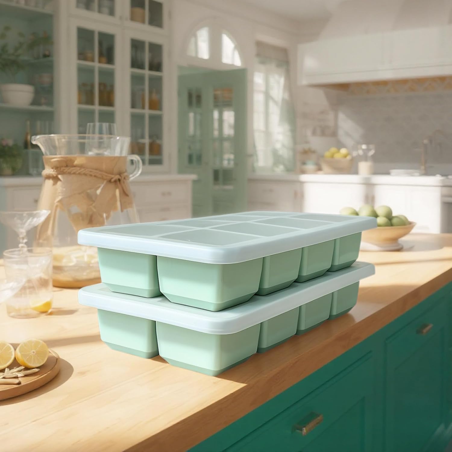 - SPACE-SAVING ICE TRAY WITH ODOR-PROOF LID: The tightly fitting silicone lid seals in freshness and prevents odors from seeping into the ice. This large ice cube mold is stackable, maximizing your freezer space while ensuring fresh, clean-tasting ice cubes every time.