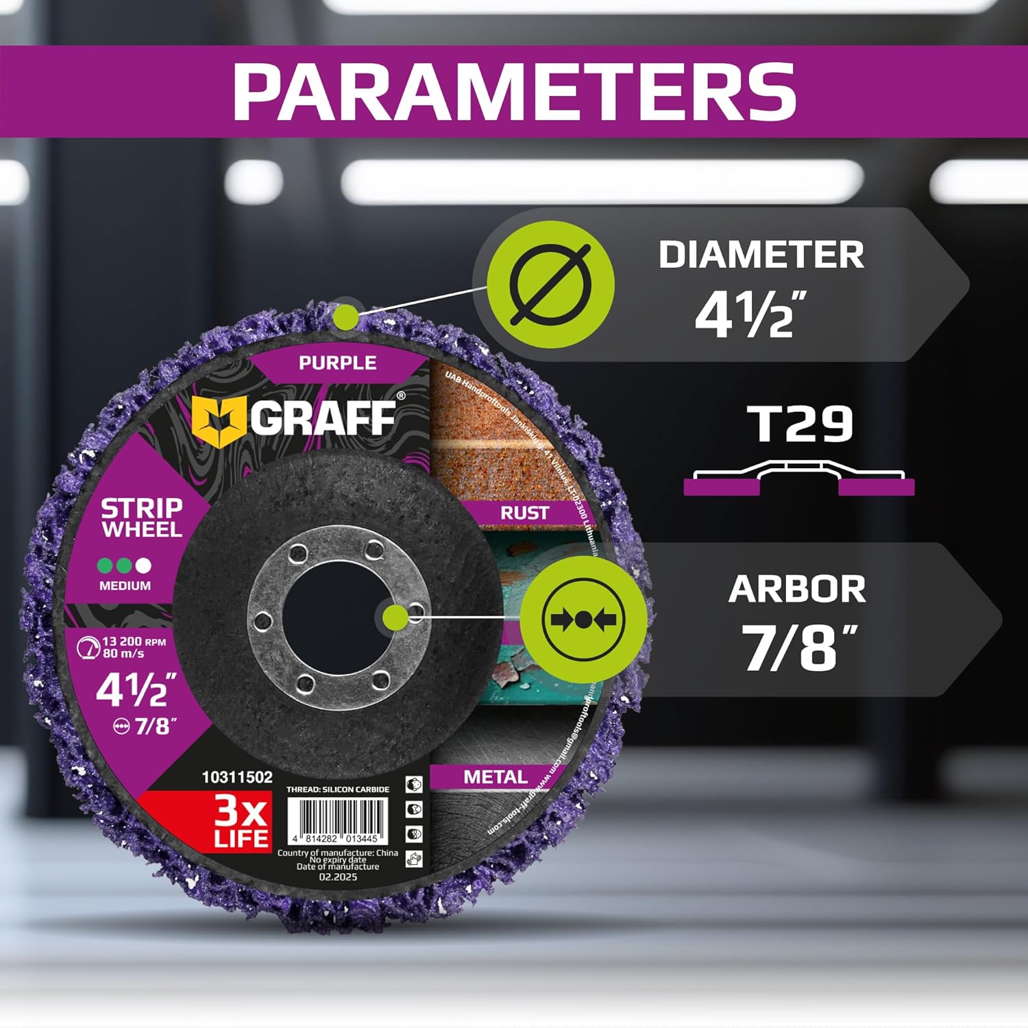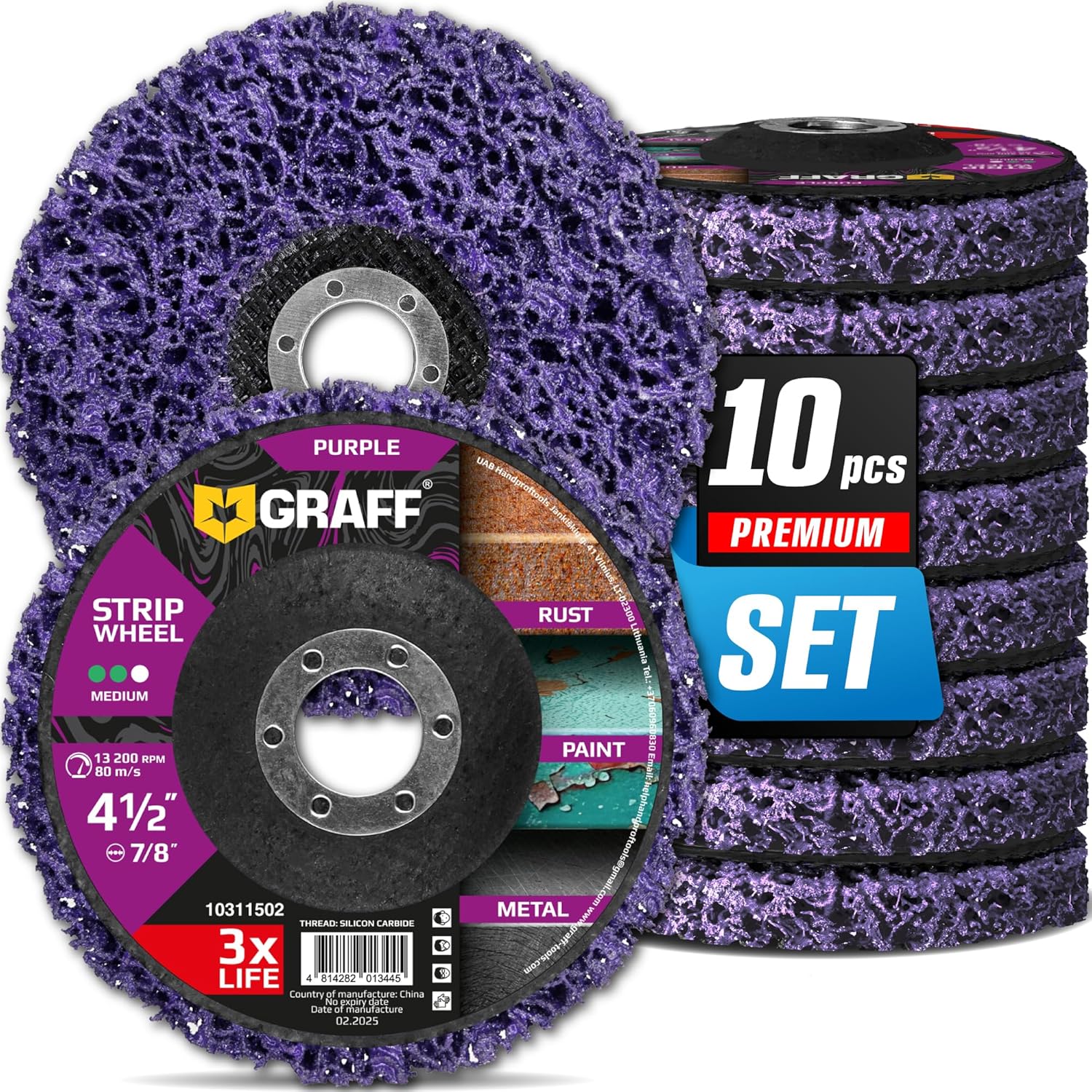 4.5 Inch Paint Stripping Disc - Rust Remover Wheel, Abrasive Discs Rust, Oxidation, Paint Remover Stripper Discs - Medium Strip Discs 4 1/2 for Angle Grinder GRAFF 10 Packs (7/8" Arbor)