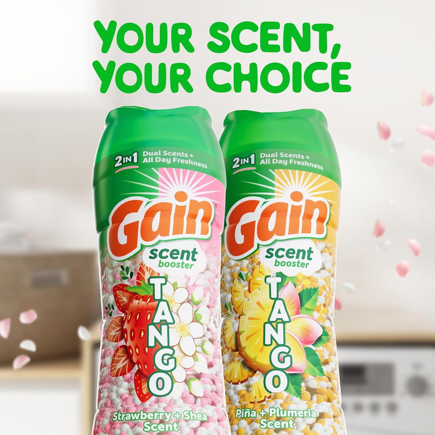 - Includes one [size] bottle of Gain Tango Dual Scent Laundry Beads in Strawberry and Shea Scent