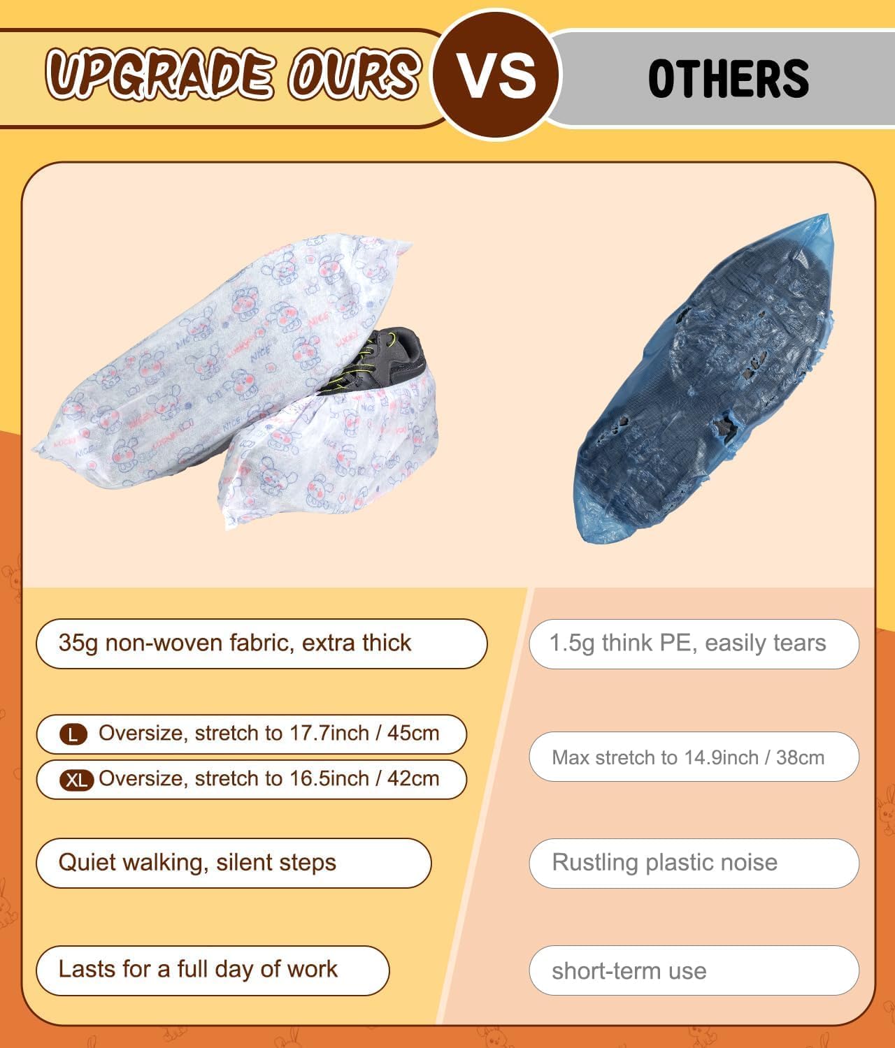 - 3. Comfortable & Breathable, Yet Tough Enough for Reuse Made from premium, lightweight non-woven fabric, these covers are far more breathable than plastic alternatives, reducing sweat and discomfort. The material is also thickened for enhanced durability, allowing you to reuse them multiple times for tough tasks like painting or remodeling.