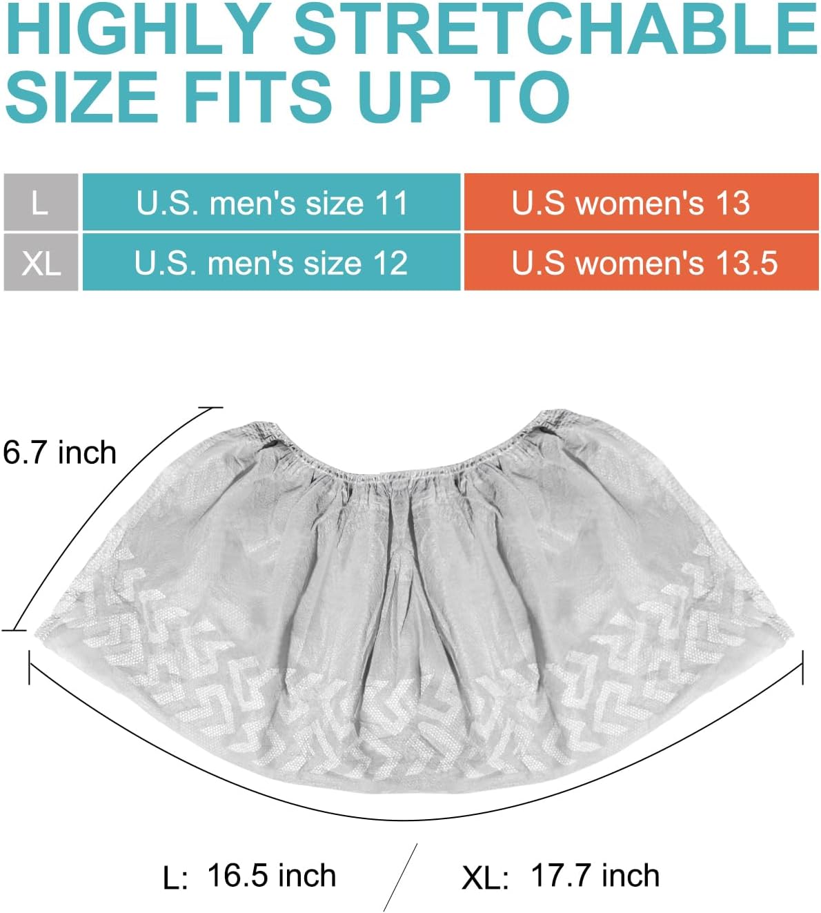 Shoe Covers Disposable 200 Pack (100 Pairs), Non-Woven Booties for Shoes, Durable Non-Slip Shoe Protectors for Indoors, Breathable Stretch Fit – L & XL Sizes, Black/Grey/Printed Options