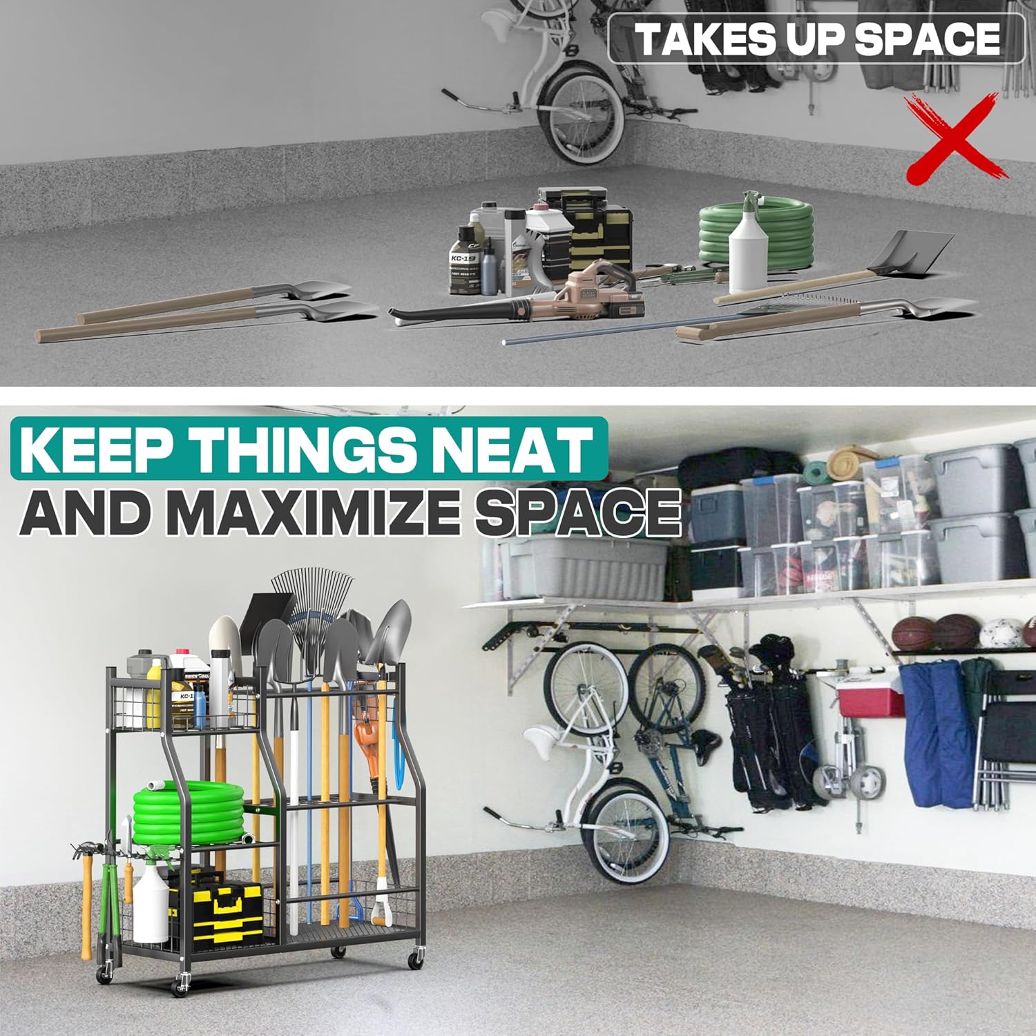 - Extra Large Storage Space: Measuring 36.25" (L)×15.75"(W)×37.25"(H), this garden tool organizer offers ample storage for heavy-duty tools, farm implements, and cleaning equipment. Perfect for gardens, garages, basements, and sheds