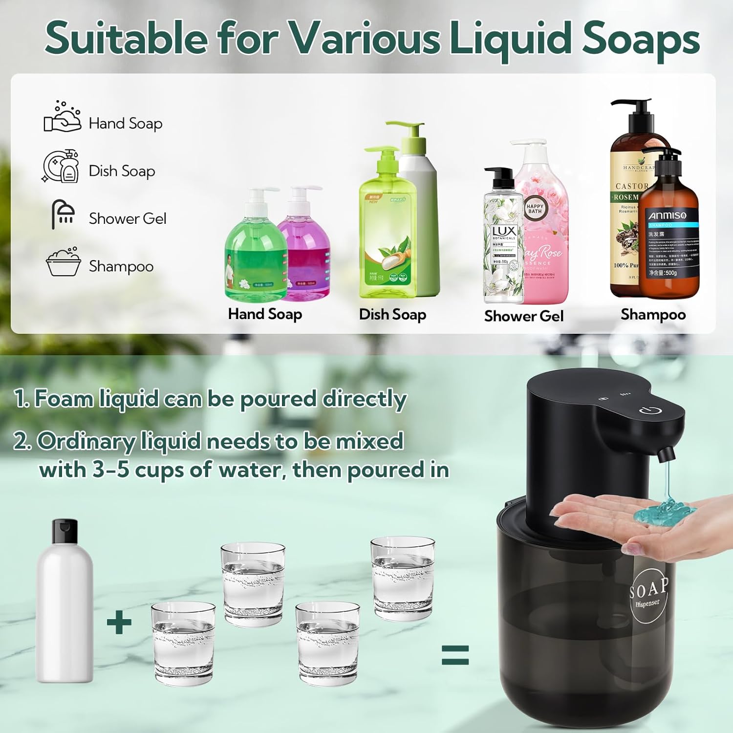 - 【Large Capacity & Long Battery Life】No more disposable batteries! Our foaming soap dispenser features a rechargeable battery, easily powered via USB. Enjoy up to 2-3 months of use on a single charge, depending on usage, for hassle-free, long-lasting performance.