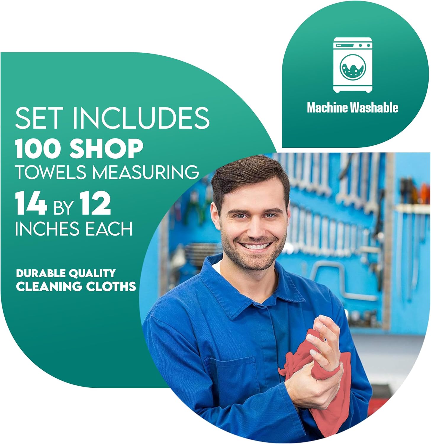 ZUPERIA Cotton Shop Towel – Multipurpose Cleaning Cloths (14" x 12" - Pack of 300 - Red) Reusable Shop Rags for Automobiles, Industrial, Restaurants, Garage, and Homes