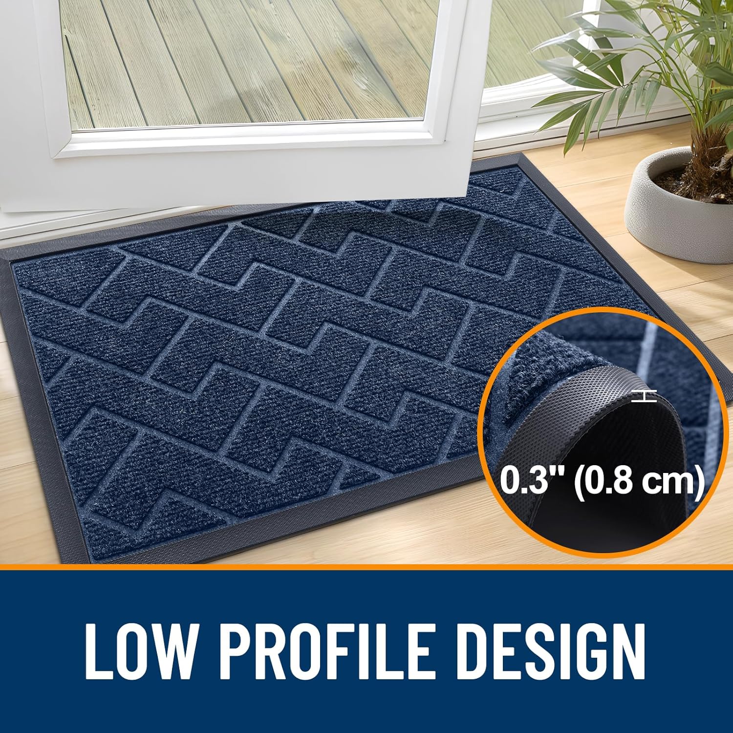 OLANLY Front Door Mat Indoor Outdoor Entrance, Waterproof All-Season, All-Weather Doormat, Sturdy Natural Rubber, Low Profile, Easy Clean Patio Porch Entryway Mat, Herringbone Brick (Blue, 47x23)