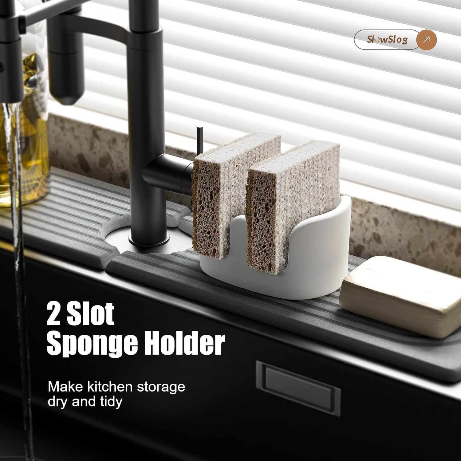 - Innovative Patented Design: The double sponge holder features a two-hole design to accommodate two sponges at once, combining functionality with modern elegance. Elevate your kitchen sink decor with this sleek and practical stone sponge stand
