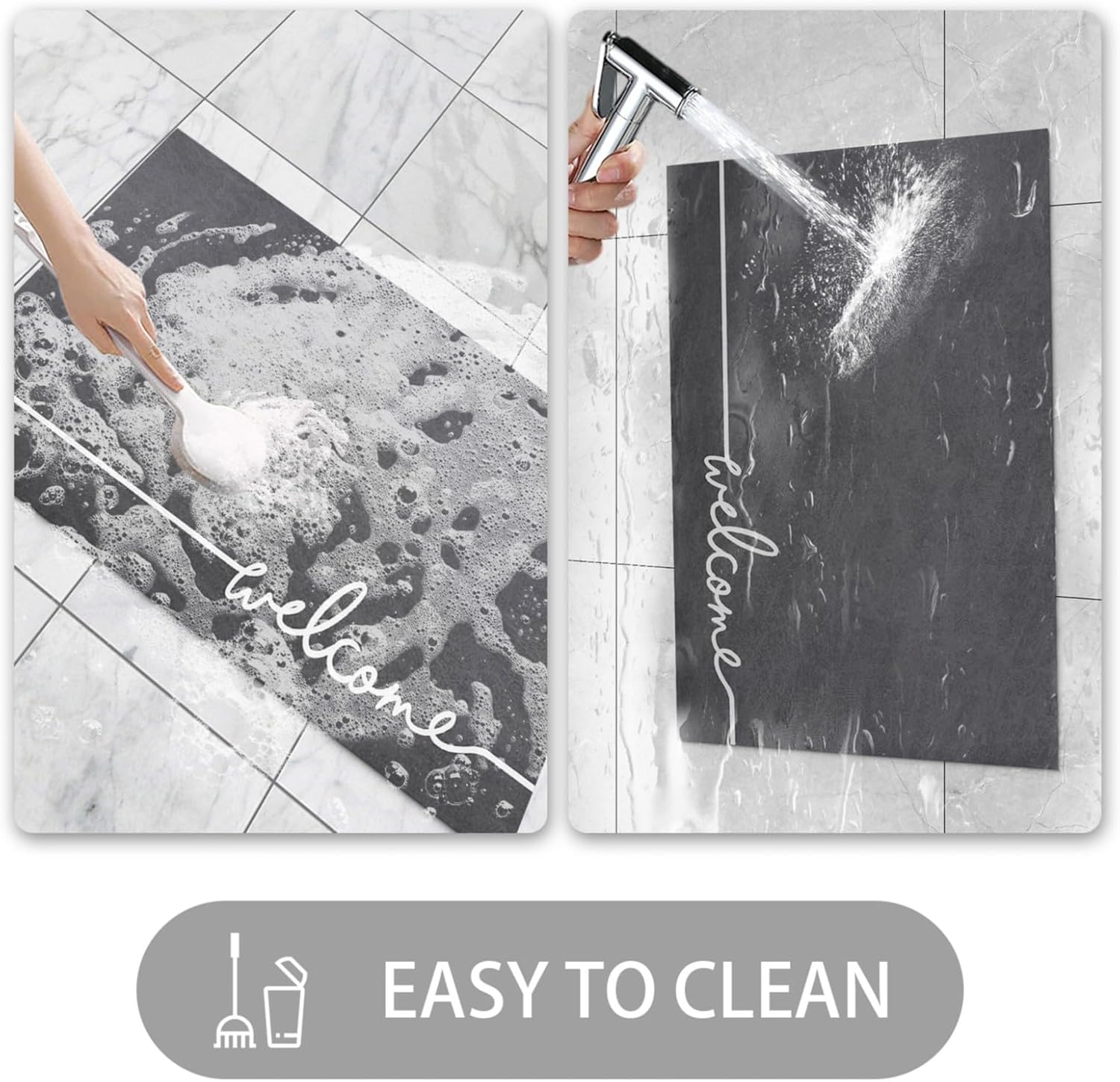 - 【Absorbent & Quick-Dry】Crafted with diatomaceous earth, this mat can absorb up to 1.9 gallons of water per square yard, making it perfect for high-moisture areas like bathrooms. Use it as an entrance mat to protect your floors from water damage, dirt, and debris, ensuring a clean and dry living space