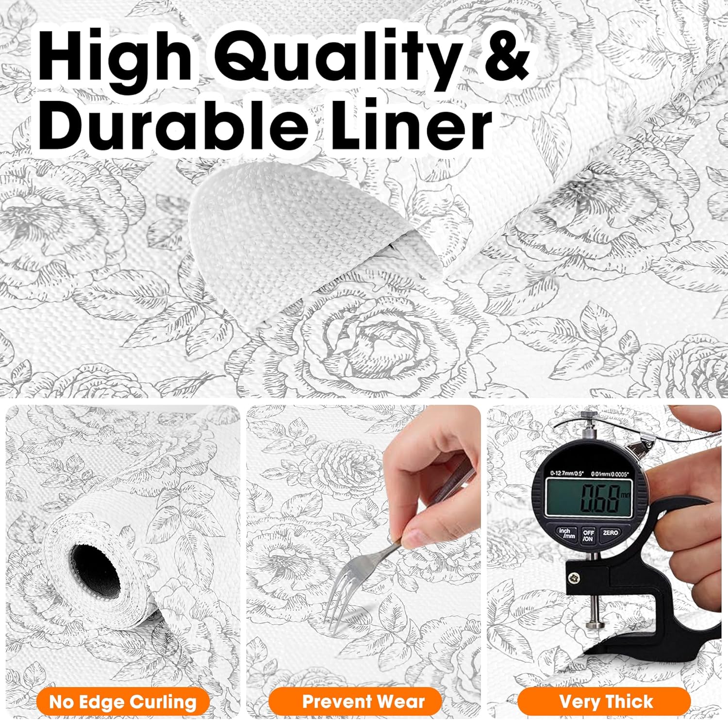 Drawer and Shelf Liner for Kitchen Cabinets Non-Adhesive, Non-Slip Cabinet Liner Shelf Paper Strong Grip Waterproof Easy to Clean for Kitchen Shelves Cupboard, Flower,23.6IN X 10FT