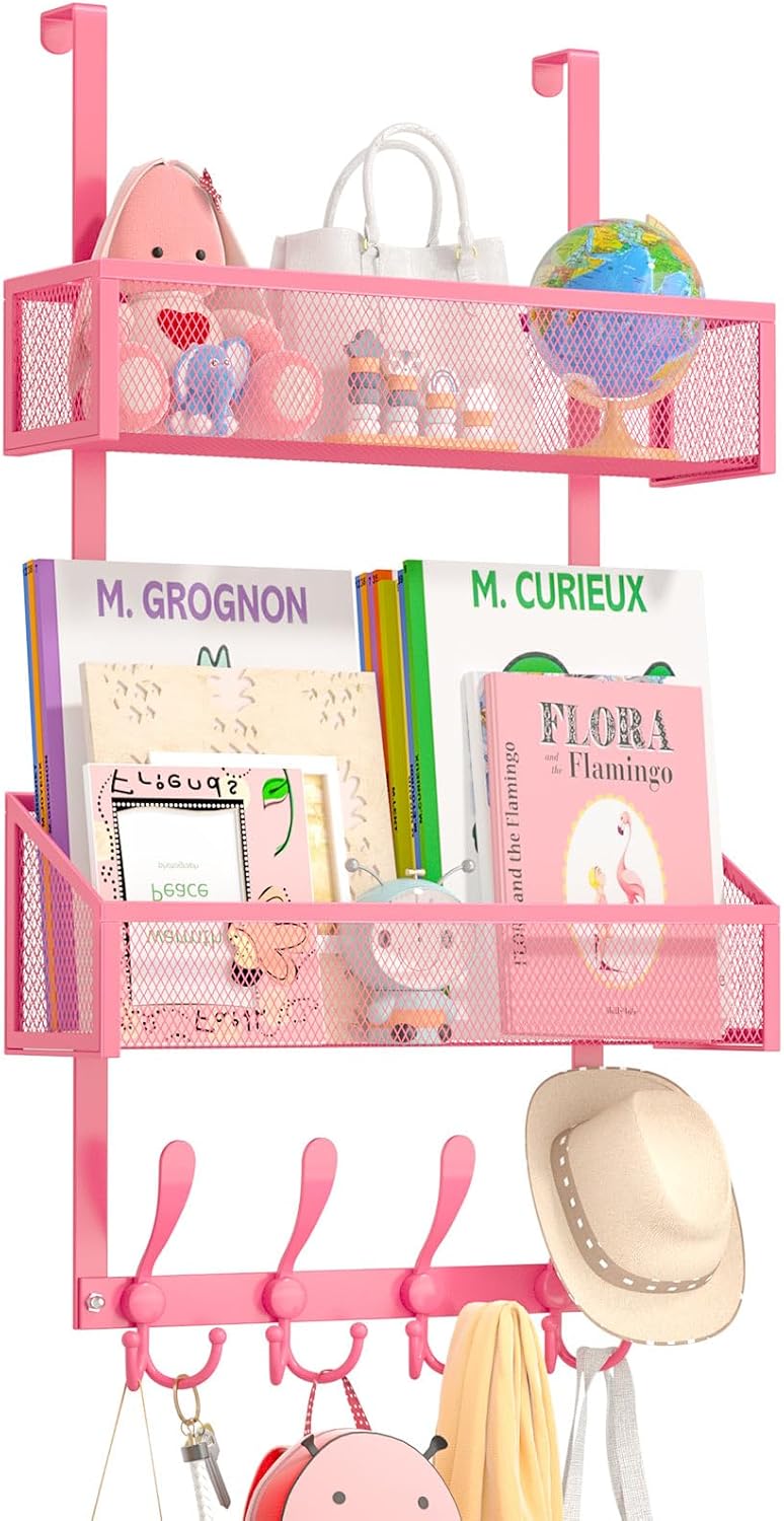 Over The Door Hooks Organizer, Coat Rack Over The Door Storage Hanger Towel Rack, Back of Storage Organizer for Bathroom,Bedroom,Kitchen,Office (Pink 3-Tier)