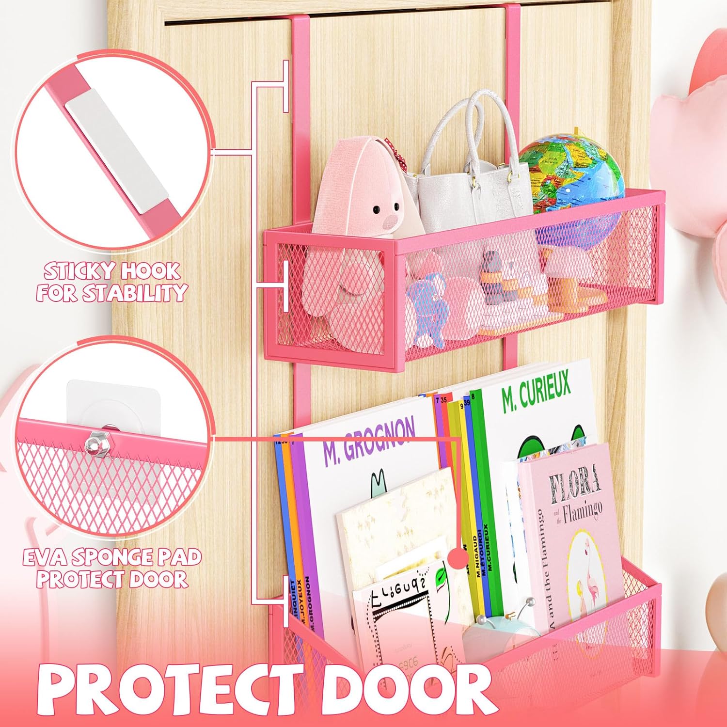 - 【Fashionable design for over door hook】Over the door Organizer is designed with high-density mesh,which prevents very small items from falling down.And over the door hooks contain a basket that is deeper than the others, ensuring that your items will not fall out.The storage basket have a slanting design, which makes it easier to take things out. Back of door storage organizer can be used in the bathroom, kitchen, bedroom,office and other places where hanging storage is needed,They taking up a lot of different roles to meet your needs.