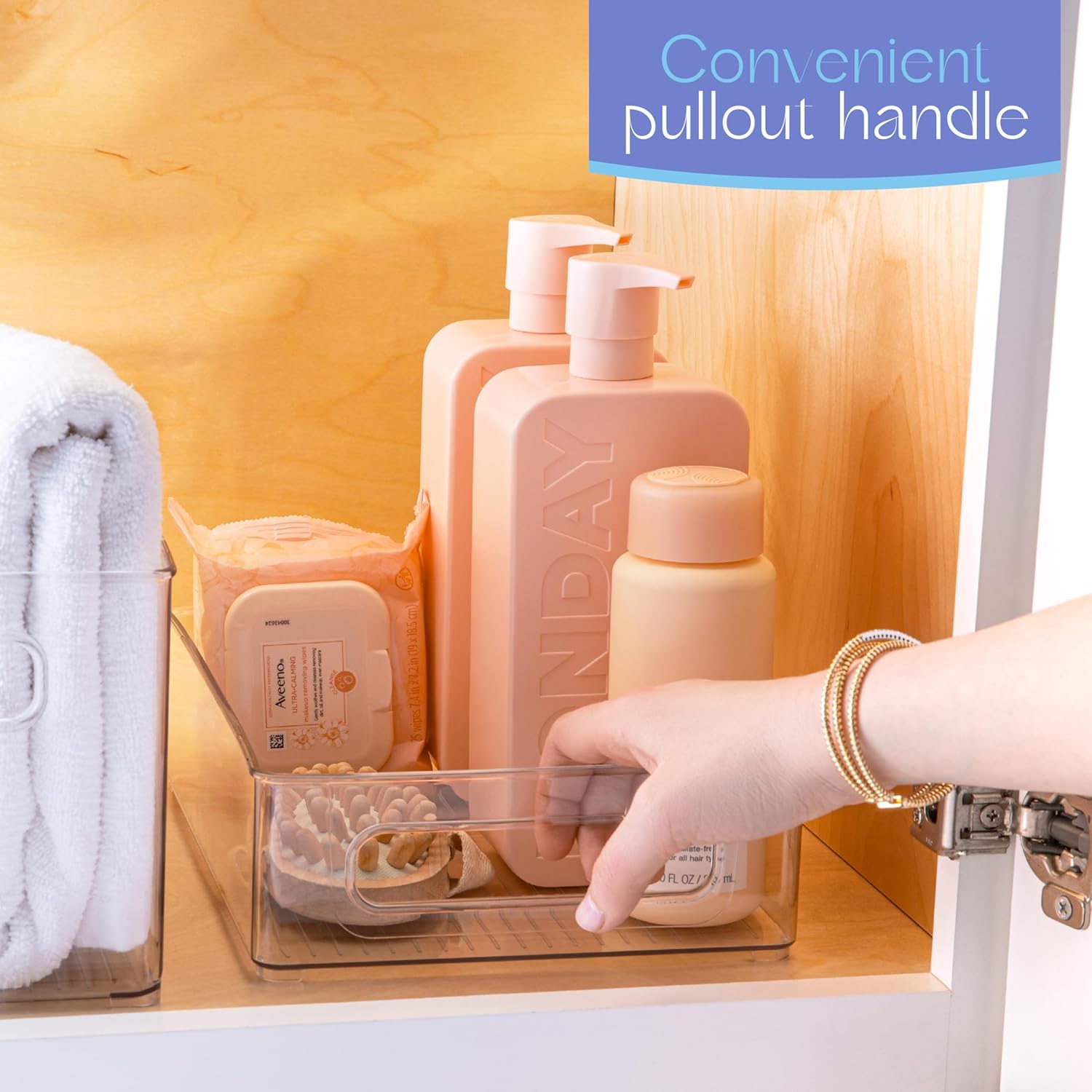 - Easy Visibility and Convenient Handles: The clear plastic design allows you to quickly see and access your stored items without any hassle. Built in grip handles provide a secure and comfortable hold, making it easy to pull out the bin and grab what you need. The open top design adds conveniece, perfect for busy families, organizers and anyone looking to organize their space.