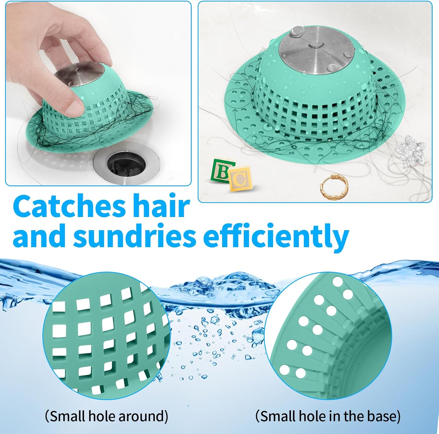 - Bathtub Drain Hair Catcher - Efficiently catches hair, rings, earrings while allowing water to drain and easy to use & clean.