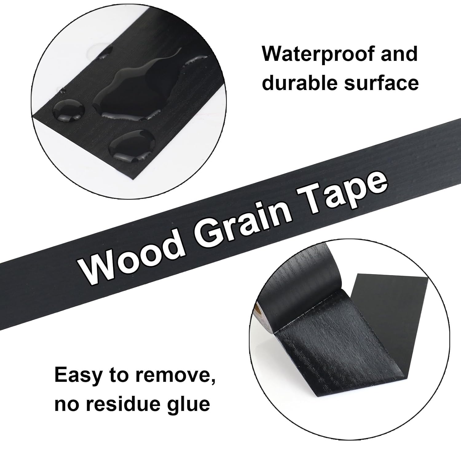 - Usage: Wood Grain Repair Tape is a wood veneer strip with a pre-applied self-adhesive back. Simply peel, cut out the desired length, stick and hand press the adhesive to give you an easy finish.Removable without leaving any residue or causing damage.