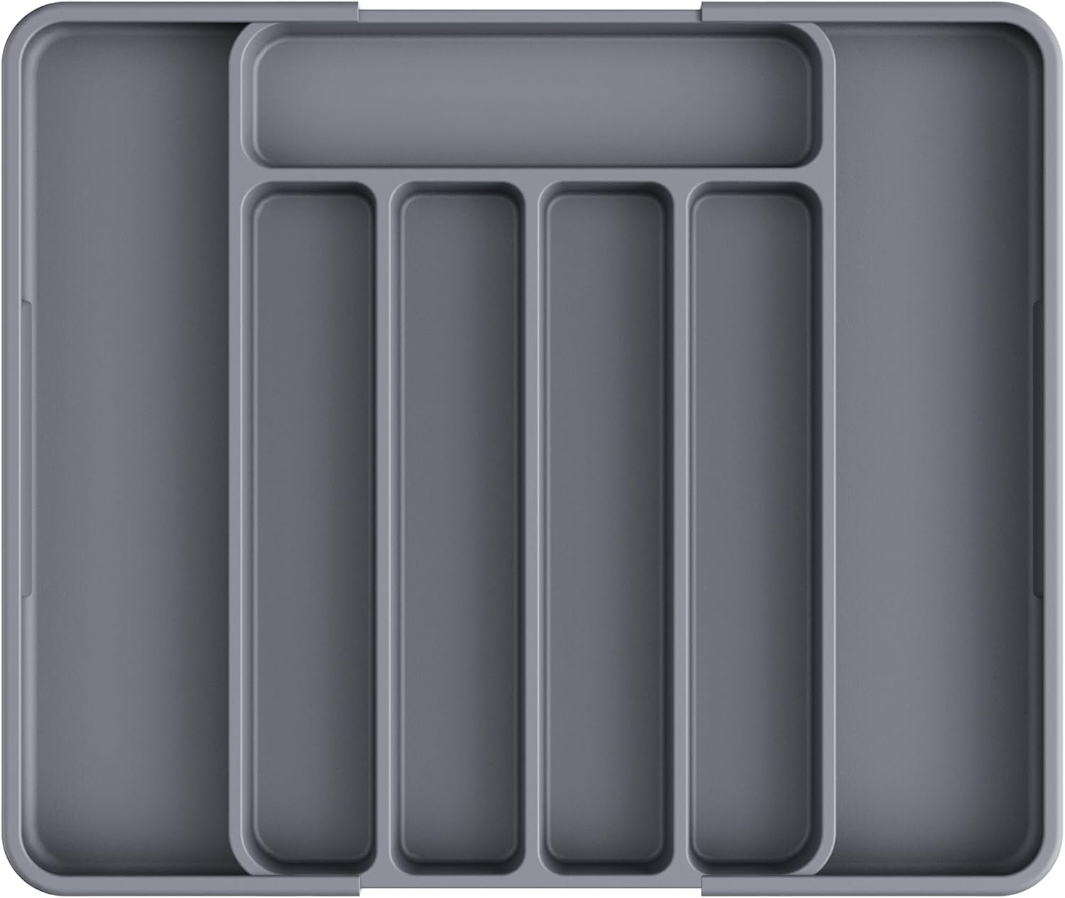 Kitsure Cutlery Drawer Organiser for Kitchen - Adjustable Cutlery Tray for Effortless Utensil Sorting, Versatile Kitchen Storage & Organisation Solution, 12.13" x 1.54" x 8.07"~13.90", Grey