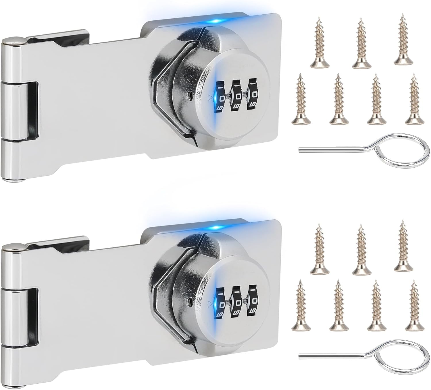 Keyless Cabinet Lock with Combination Code - 3-Digit Password Hasp Latch Lock for Drawers, Bifold Closet Door and Double Sided Door (Silver, 4.5 Inch, 2 Pack)