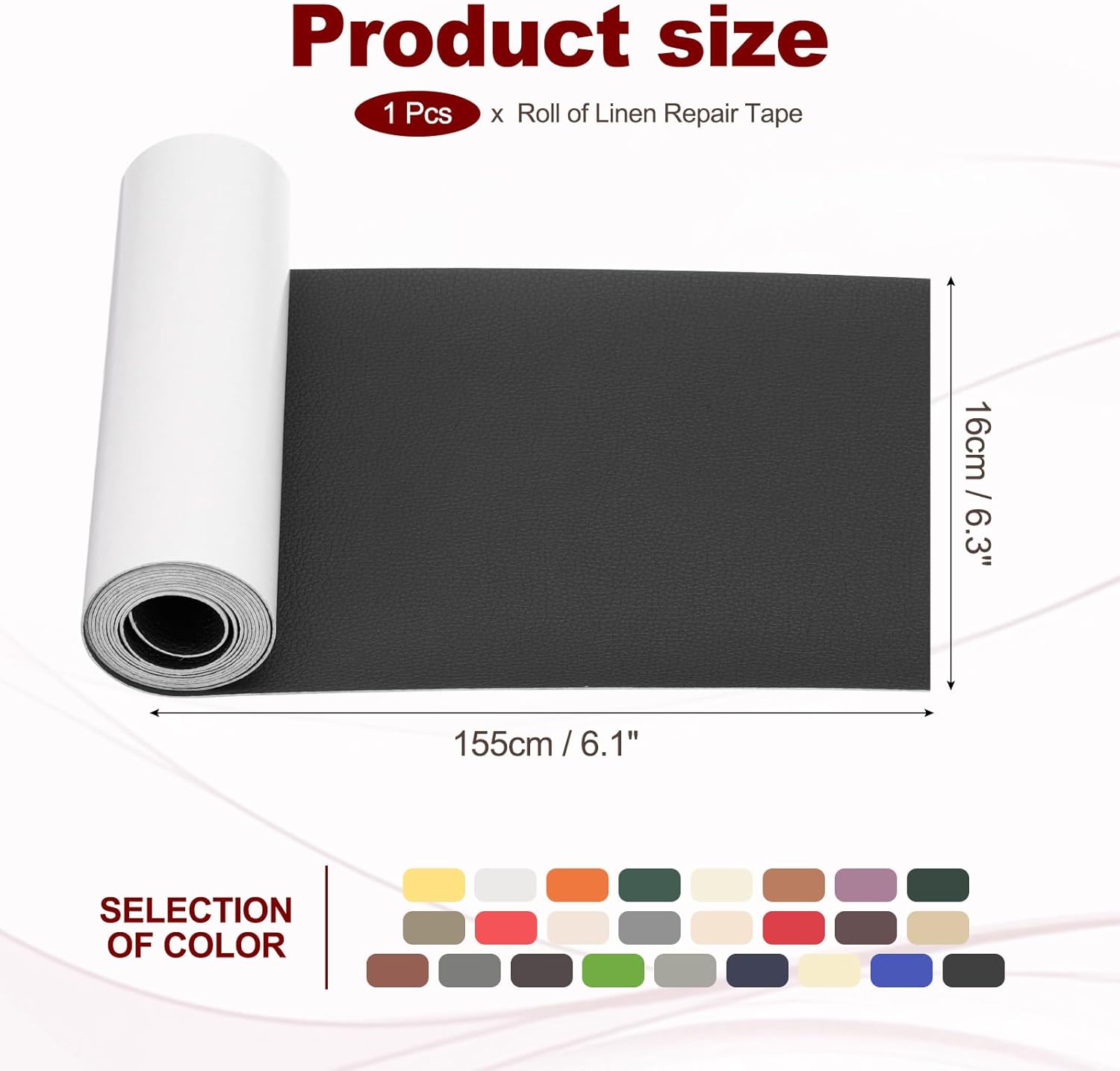 - Material: PVC Leather; Color: Black; Size: 16 x 155 cm / 6.3 x 61 inch; Package Included: Leather Patches x 1 Roll
