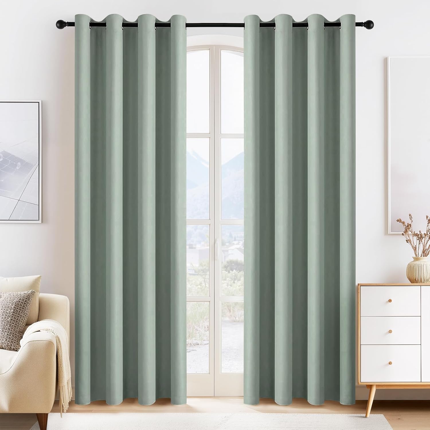 PONY DANCE Sage Green Blackout Curtains for Bedroom 84 Inch Length 2 Panels Set, Privacy Thermal Insulated Room Darkening Grommet Drapes for Living Room Window, W34 x L84 Inch