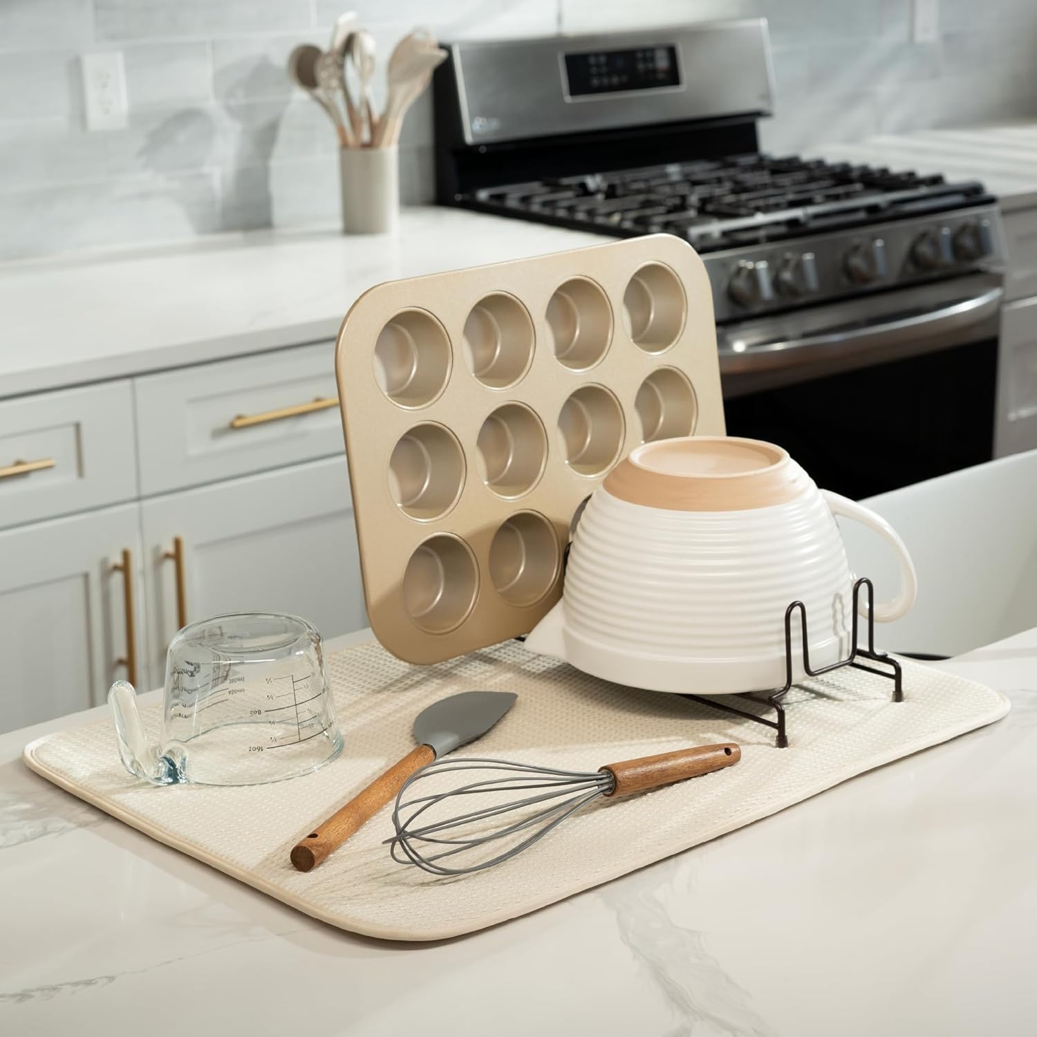 S&T INC. Dish Drying Mat XL, 18” x 24”, Absorbent Microfiber Kitchen Counter Mat, Drying Pad for Dishes, Utensils, Pots and Pans, Extra Large, Diamond Texture, Cream