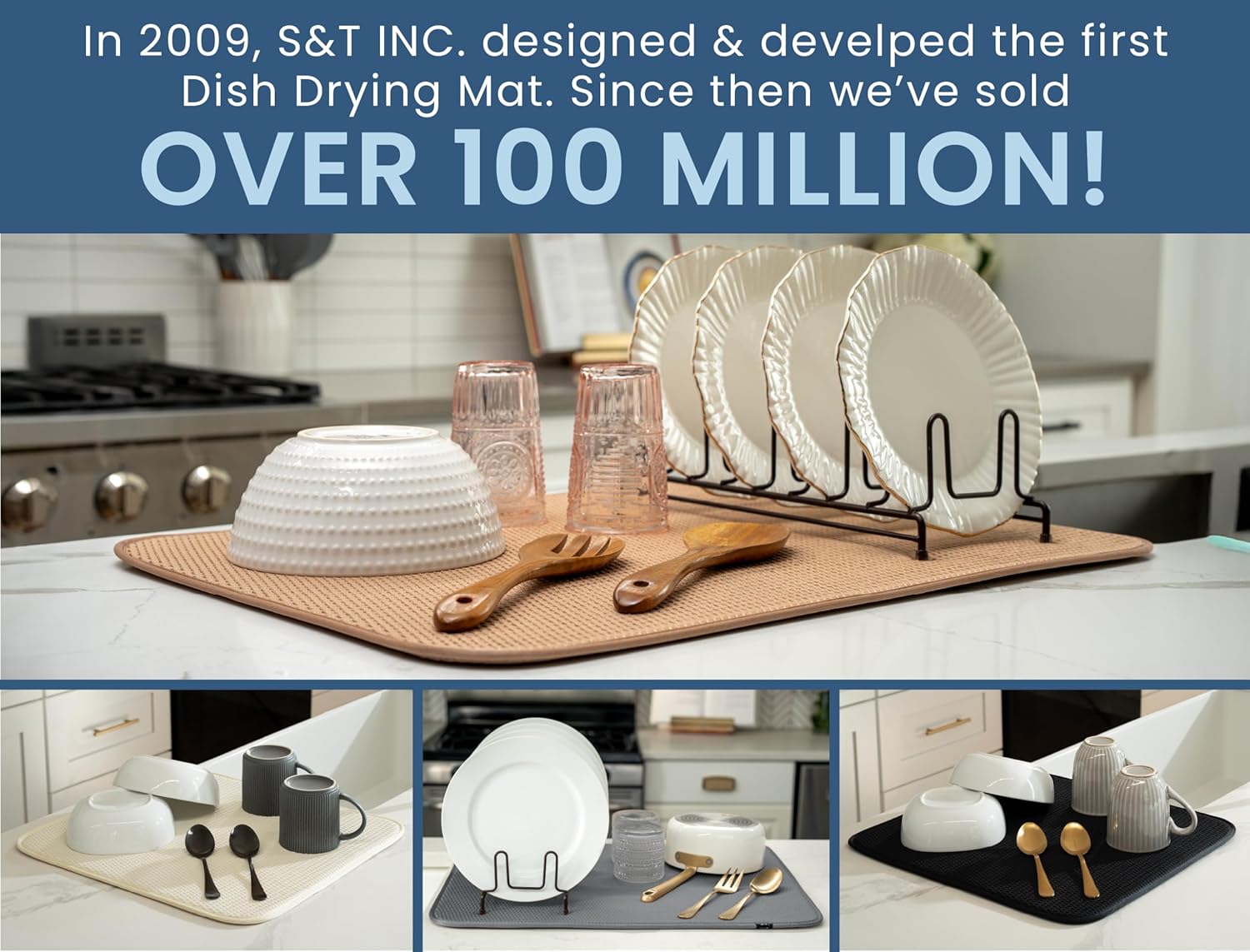 - One S&T INC. Microfiber Dish Dry Mat XL measuring 18 in. x 24 in.; kitchen mat for countertop absorbs up to 4 times its weight in water to keep your countertop dry, unlike a silicone dish drying mat