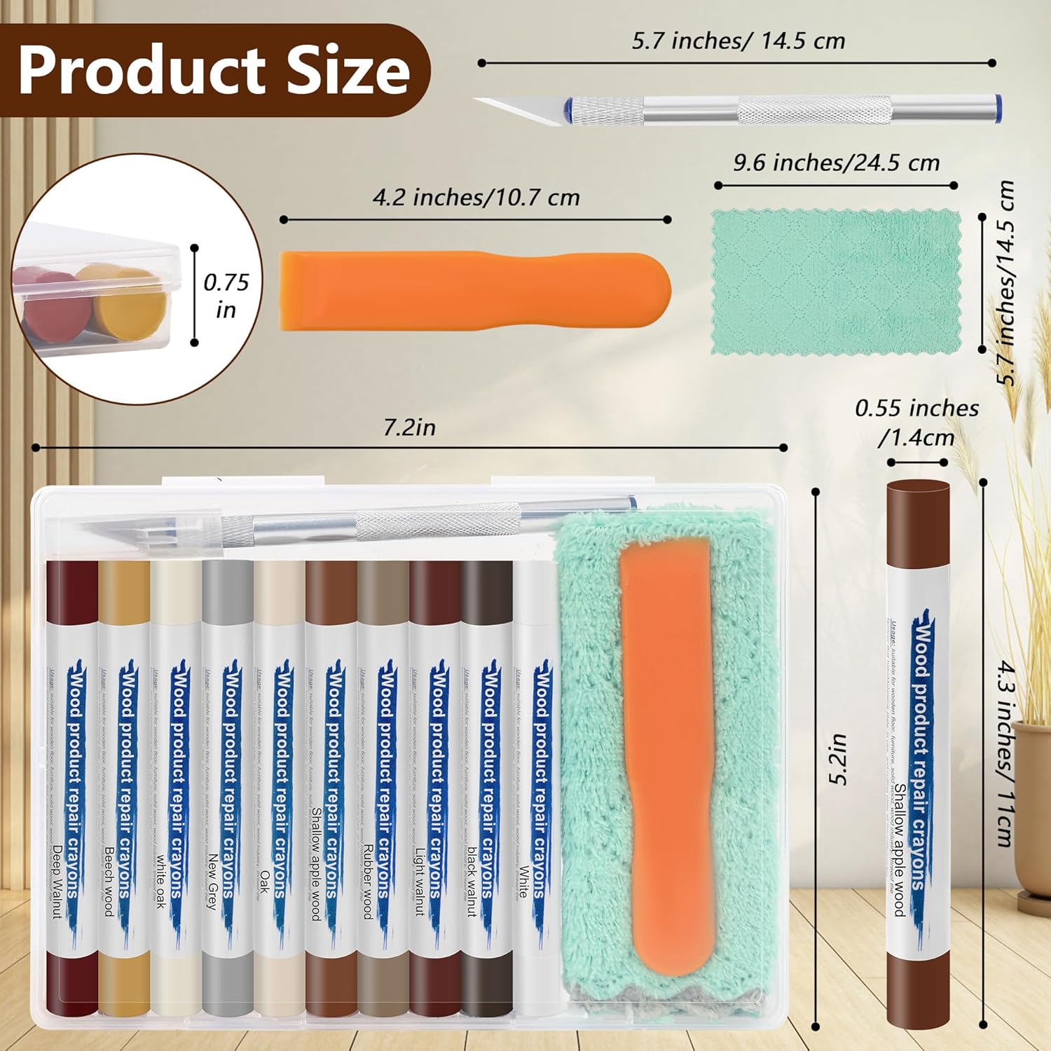 - 【 Effective Furniture Repair 】: This touch up wax stick allows you to match or mix colors to perfectly repair scratches, chips, and marks on wooden furniture, doors, cabinets, and more. Whether it's light oak, dark walnut, or white paint, this kit can meet your needs
