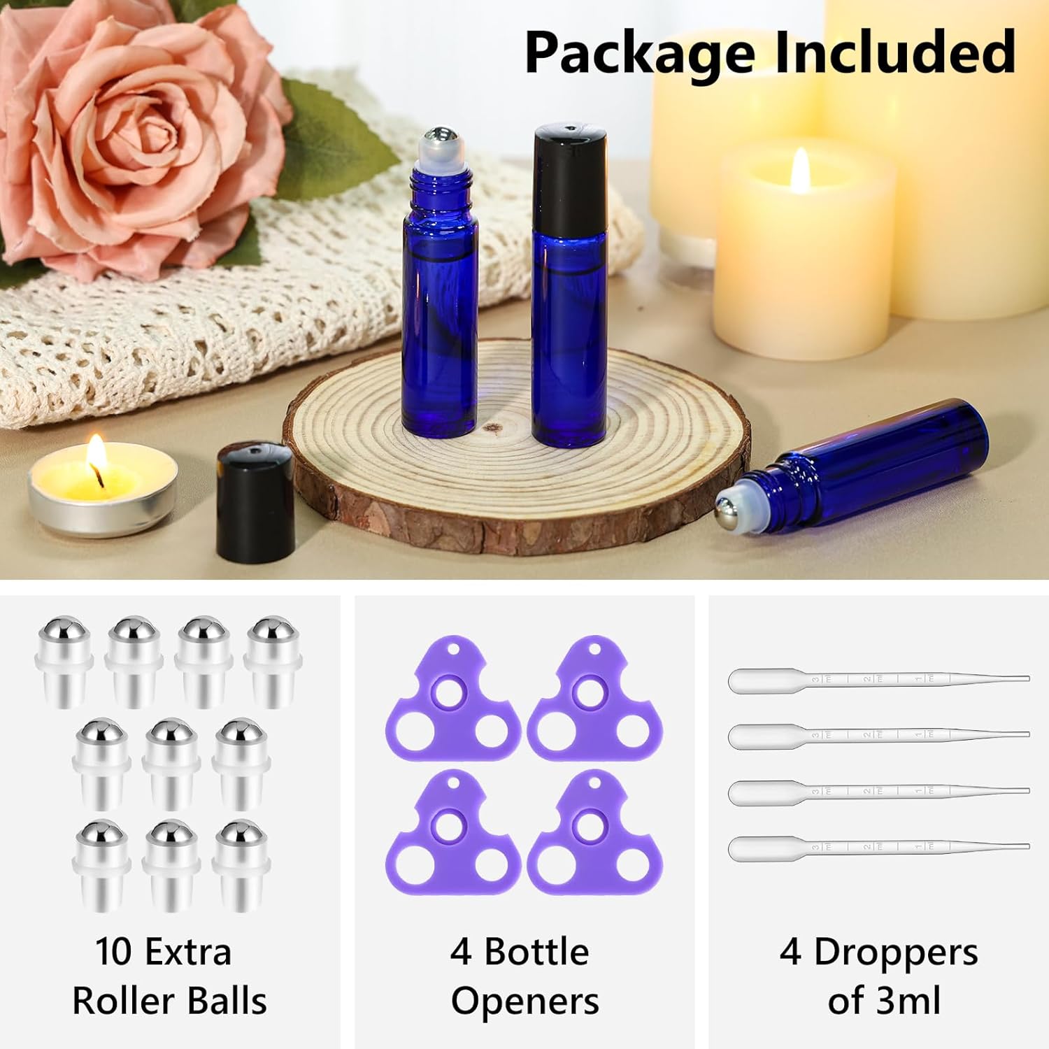 - Versatile & Precise: Perfect for DIY essential oil blends, perfumes, eye serums, and more. These refillable bottles come with stainless steel roller balls, 4 extra droppers, 10 additional roller balls, and 4 corkscrews for easy refilling—ensuring precise, mess-free application every time.