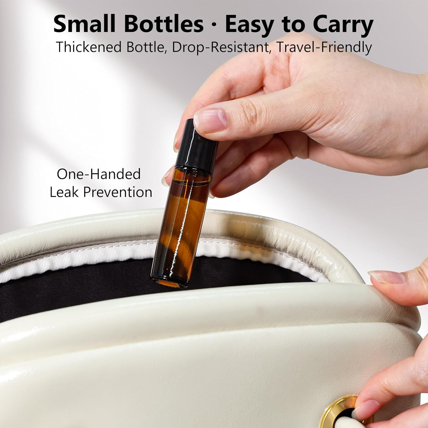 - Lightweight & Portable: These amber roller bottles for essential oils are designed with portability in mind. They fit easily into your purse, gym bag, or travel kit, making them the perfect travel essentials for your favorite oils, perfumes or skincare blends. Enjoy aromatherapy or skin care treatments on the go—without worrying about leaks or spills.