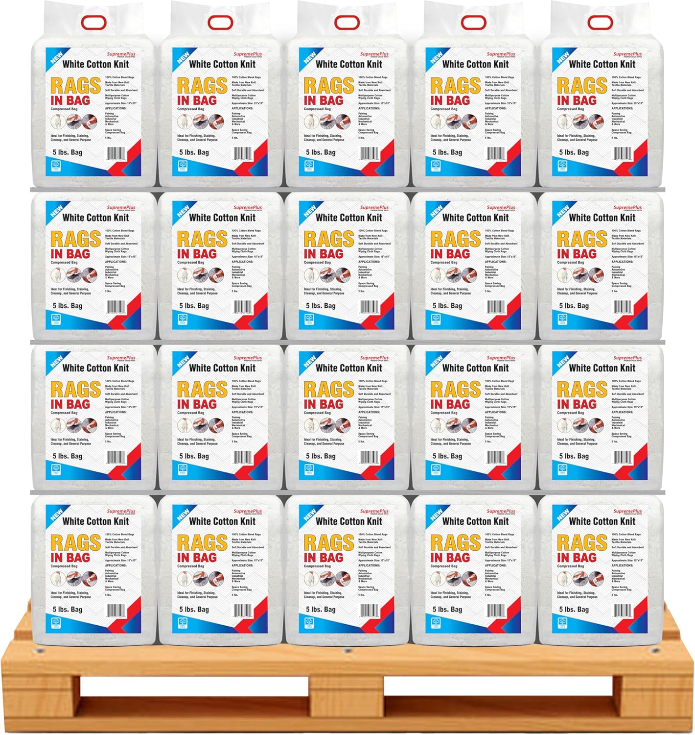 Premium White T-Shirt Cleaning Rags (600 lbs. Pallet 120x5 lbs. Bag) ā White Cotton Rags for Cleaning, Staining, Painting, Oil, Grease & Dust Removal ā Shop Rags Bulk for Multipurpose use