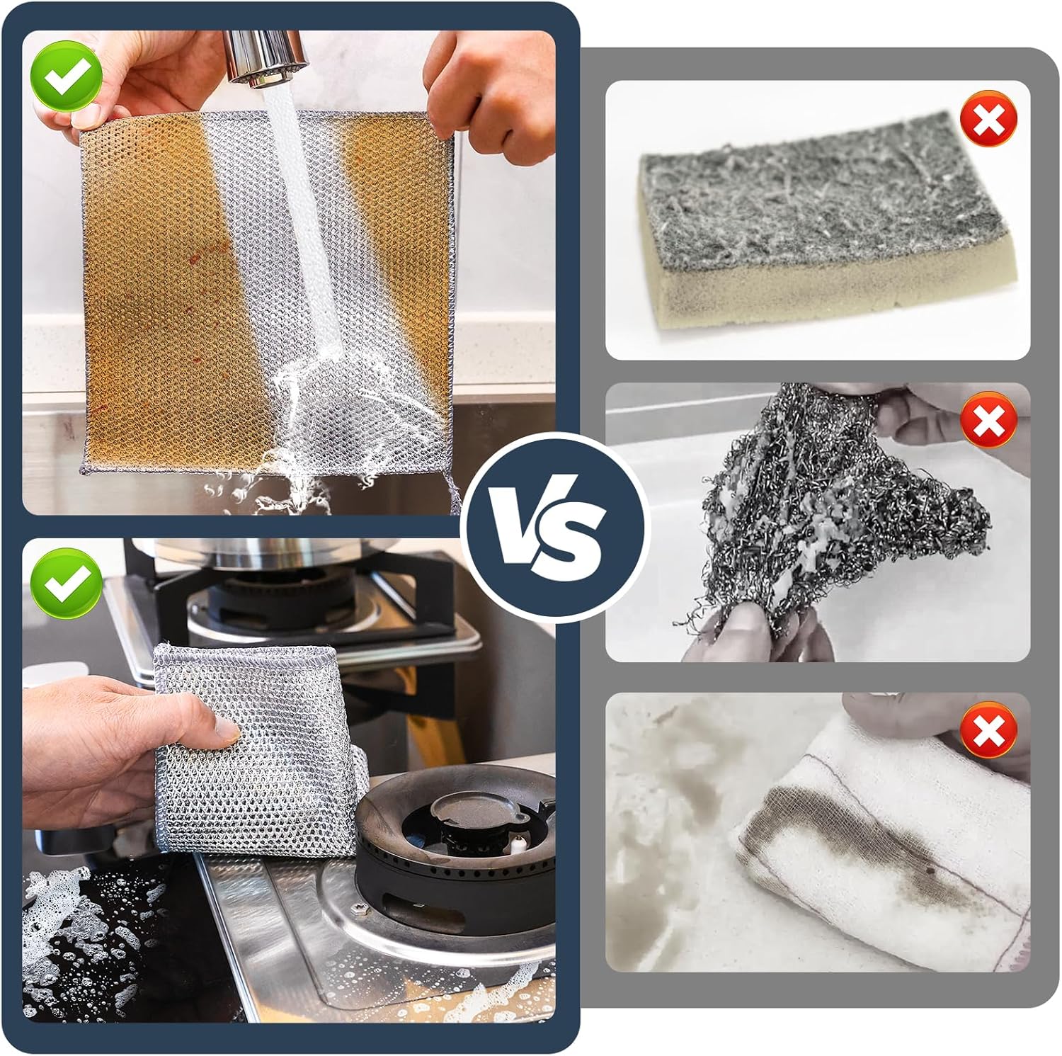 - ใ๐๐จ๐ฐ๐๐ซ๐๐ฎ๐ฅ ๐๐ฅ๐๐๐ง๐ข๐ง๐ ๐๐จ๐ซ ๐๐ฎ๐ฅ๐ญ๐ข๐ฉ๐ฅ๐ ๐๐ฎ๐ซ๐๐๐๐๐ฌใNavona multipurpose wire dishwashing rags for wet and dry, they can effortlessly clean surfaces such as sinks, stovetops, and countertops. Their versatility makes them an indispensable tool in the kitchen, alleviating the burden of various cleaning tasks.