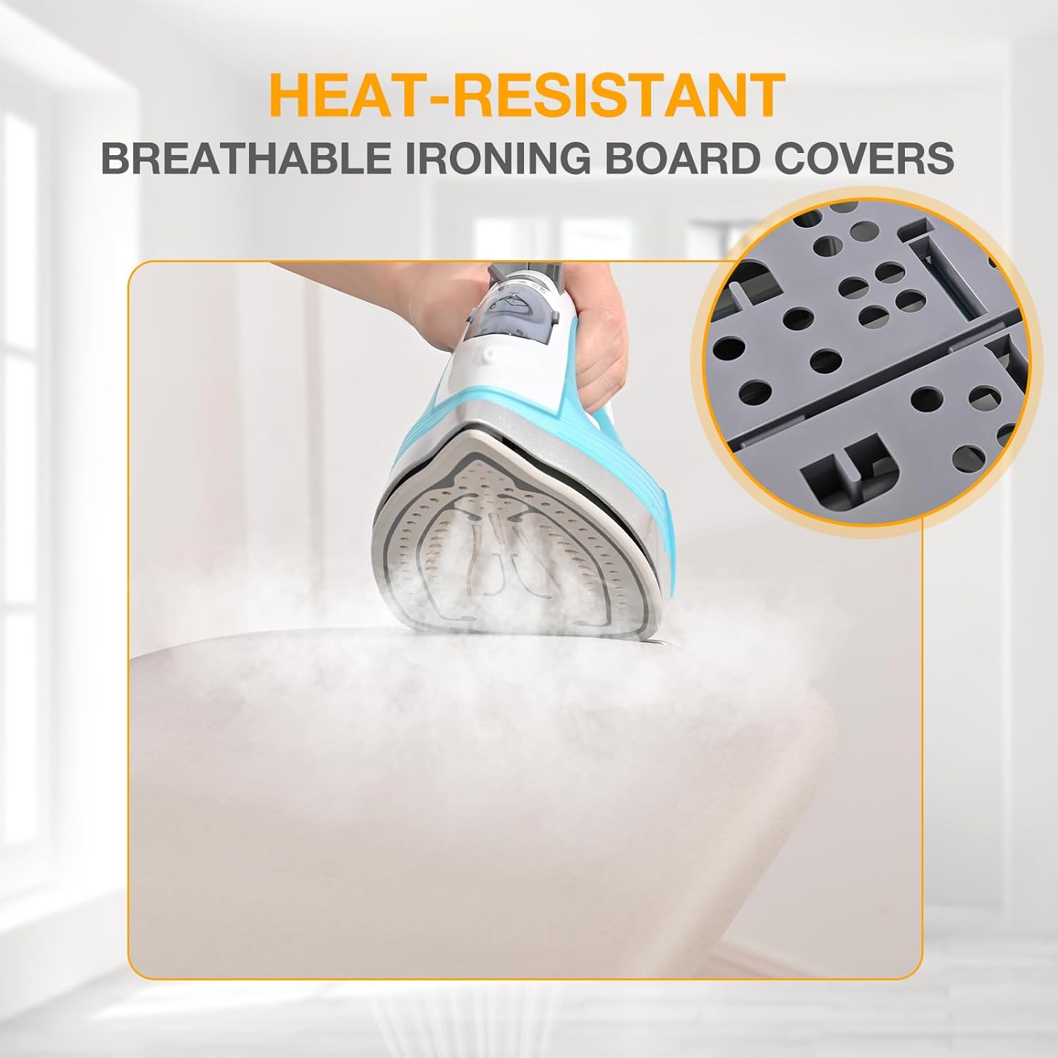 - Professional-Grade Performance: Our Ironing boards with strong mesh top,it can allows for even heat distribution, 100% cotton cover resistant to high temperatures, preventing clothes from sticking,achieve professional-grade ironing results