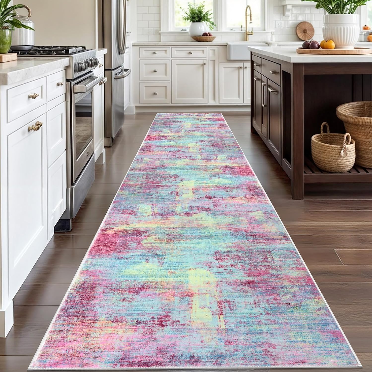 - Machine Washable: This hallway runner is machine washable for easy maintenance, keeping it fresh and vibrant without the need for manual cleaning. Noted: When vacuuming, use a low setting or a robotic vacuum to prevent shifting or bunching
