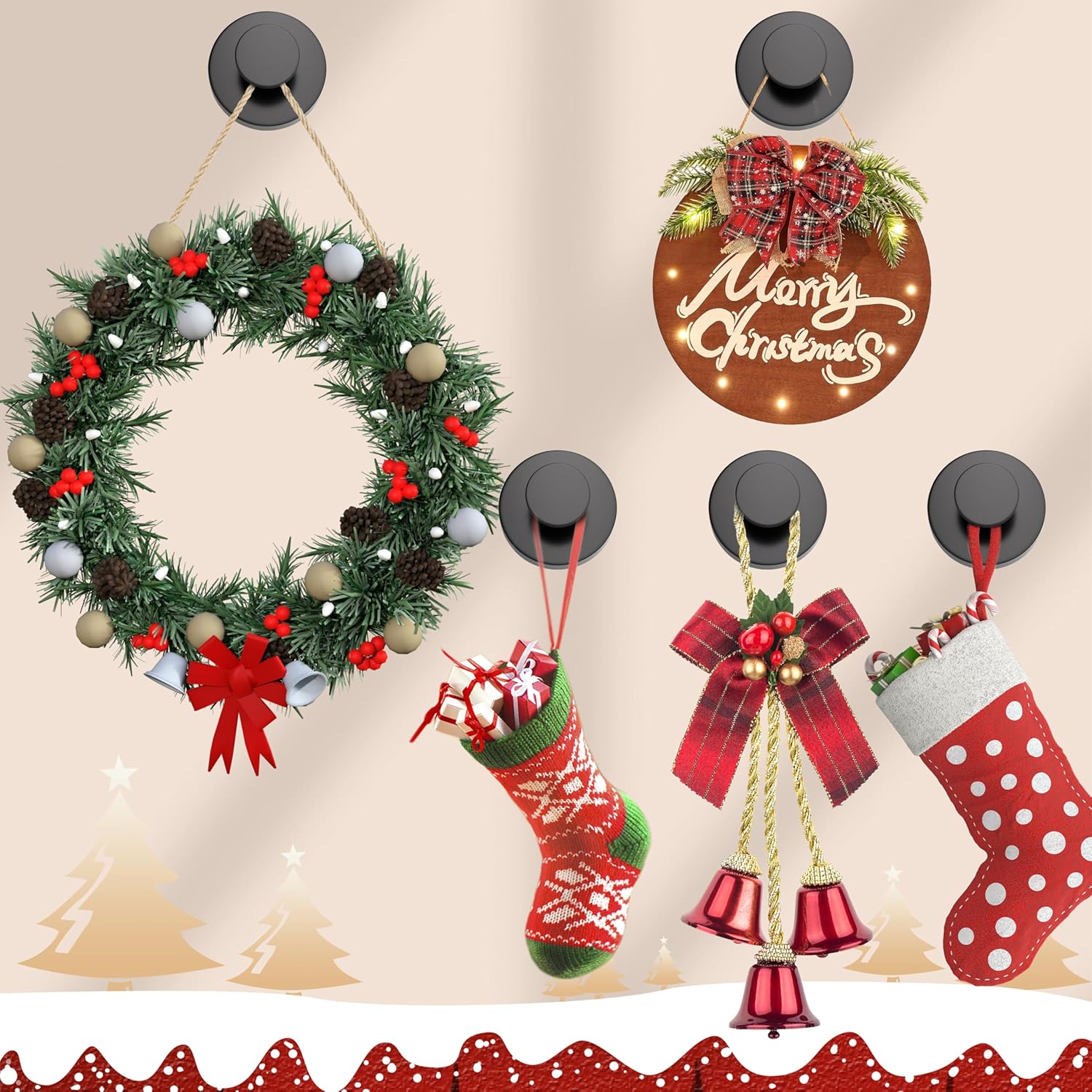 - 【Hangs Securely on 10+ Materials】The suction cup hooks are suitable for bathrooms,kitchens,windows,suction cup wreath hanger.heavy duty suction cups for glass.it can be fixed to fit tile, glass, mirror, marble, metal,acrylic,plastic,stainless steel,quartz,laminate and other smooth wall surfaces.,it can hang towels, loofahs, bathrobes,garland wreath and other items up to 15 lbs