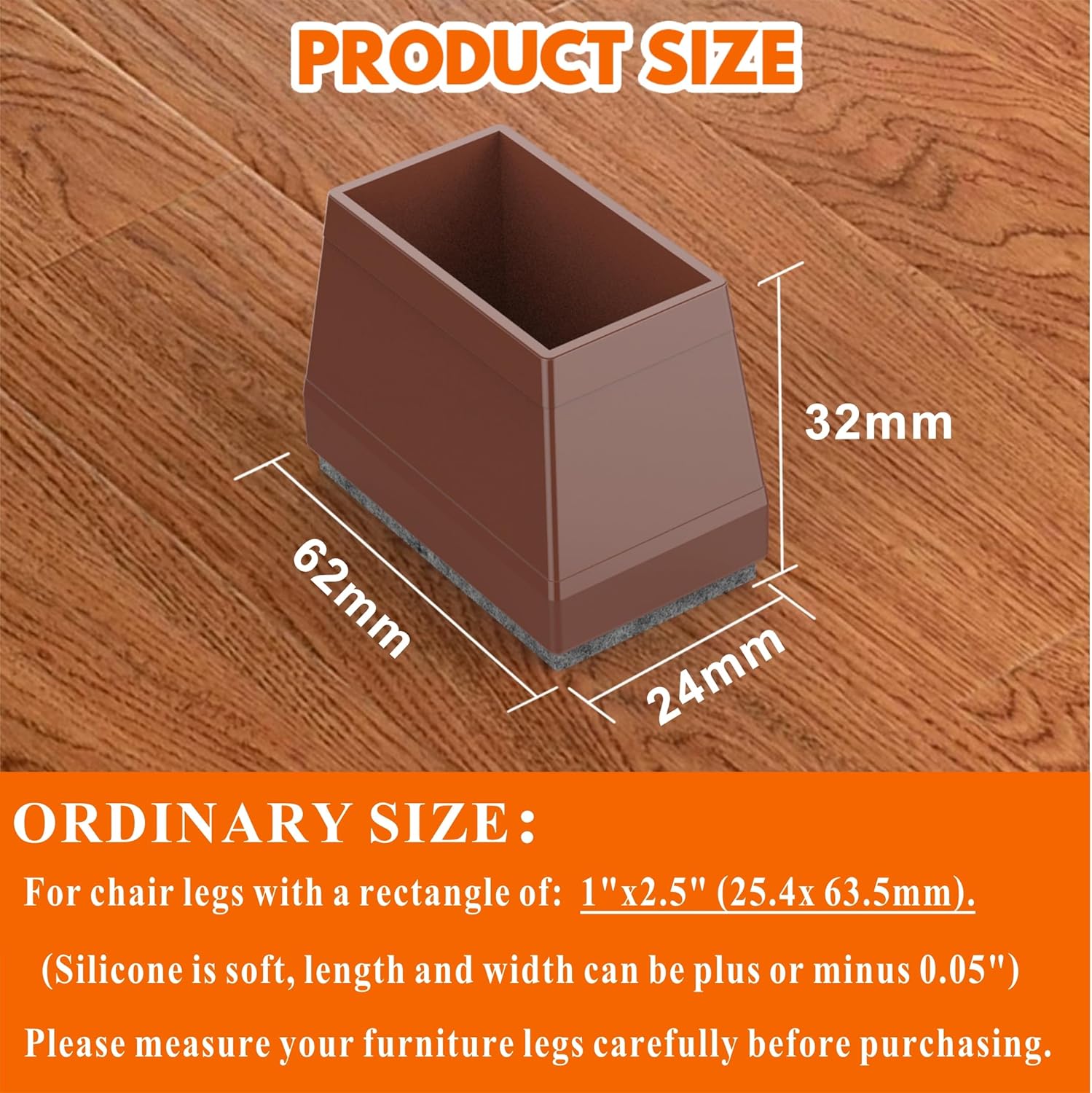 Rectangle Chair Leg Protectors for Hardwood Floors,16 PCS Silicone Covers to Protect Wood Tile Floors Felt Pads Furniture Leg Caps Reduce Noise. Easy to Move.(Brown,1 x 2.5 Inch,Rectangle)