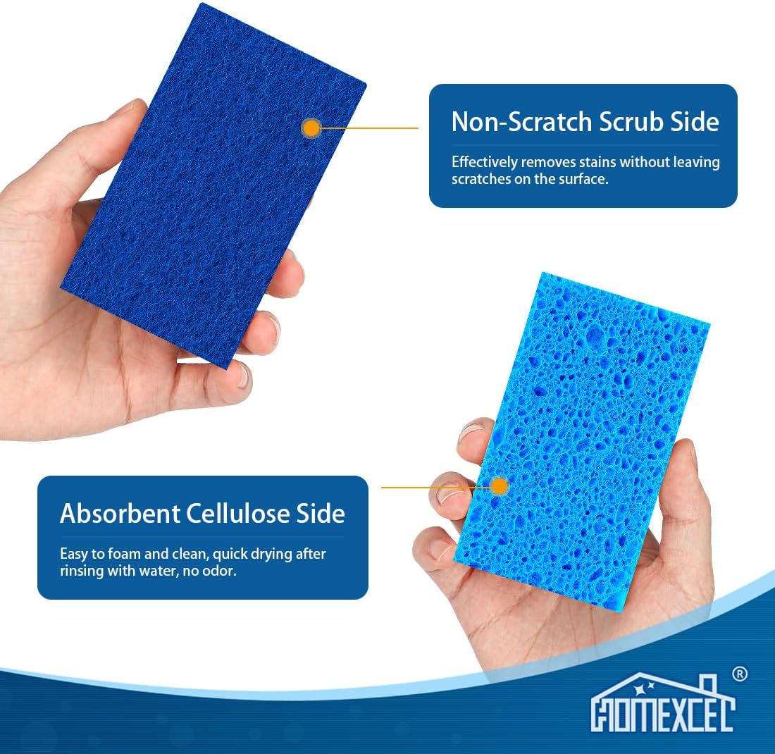 - Upgraded 3-Layer Sponge Design: Upgraded triple-layer construction combines a non-scratch scrub layer for gentle cleaning, A flexible foam core that provides a comfortable grip to clean various surfaces, and an absorbent cellulose sponge layer that dries quickly and wipes efficiently