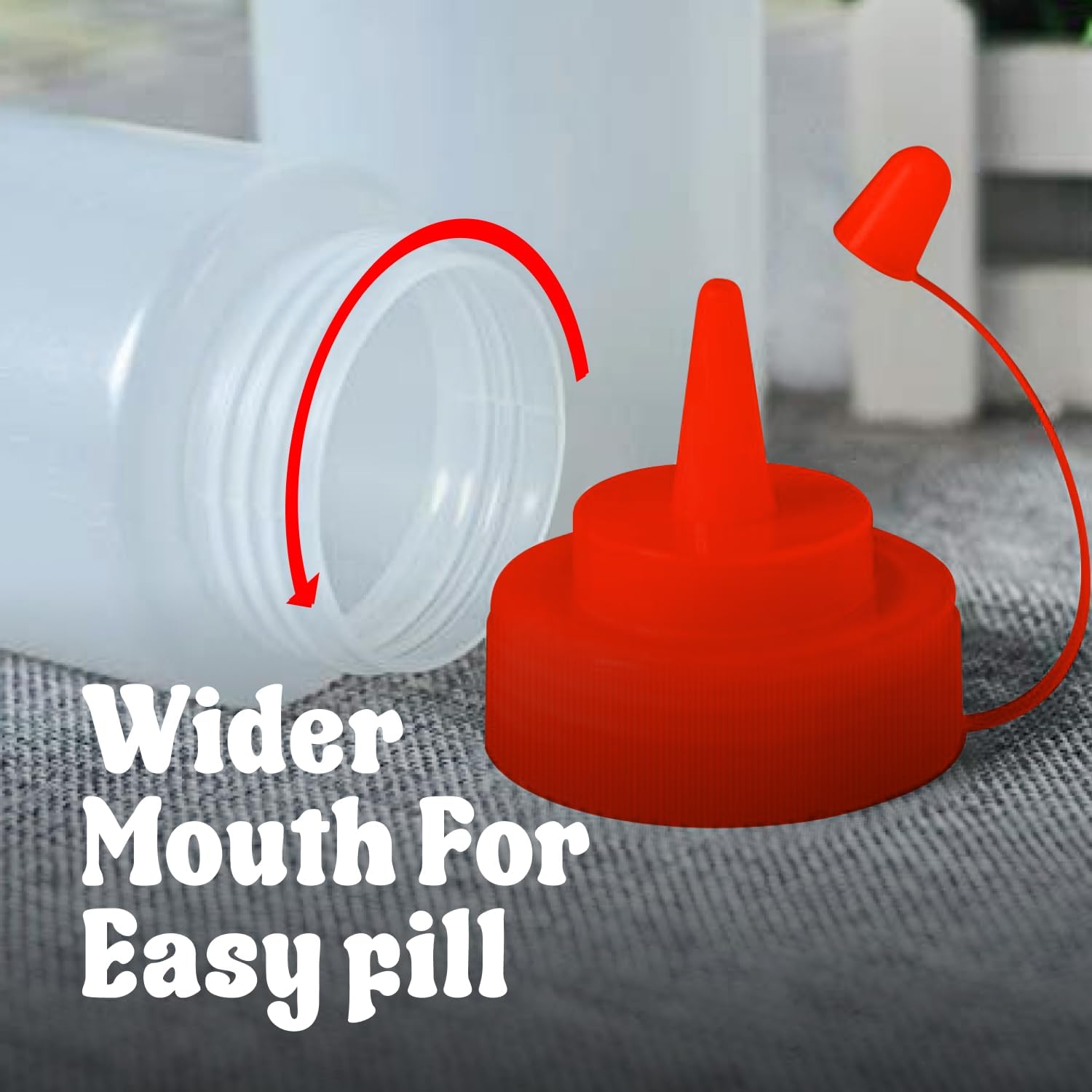 - Leak-proof Nozzle: Our condiment squeeze bottles are built with a high-tech leak-proof design, ensuring that your condiments and sauces stay inside the bottle, providing a spill-free experience.