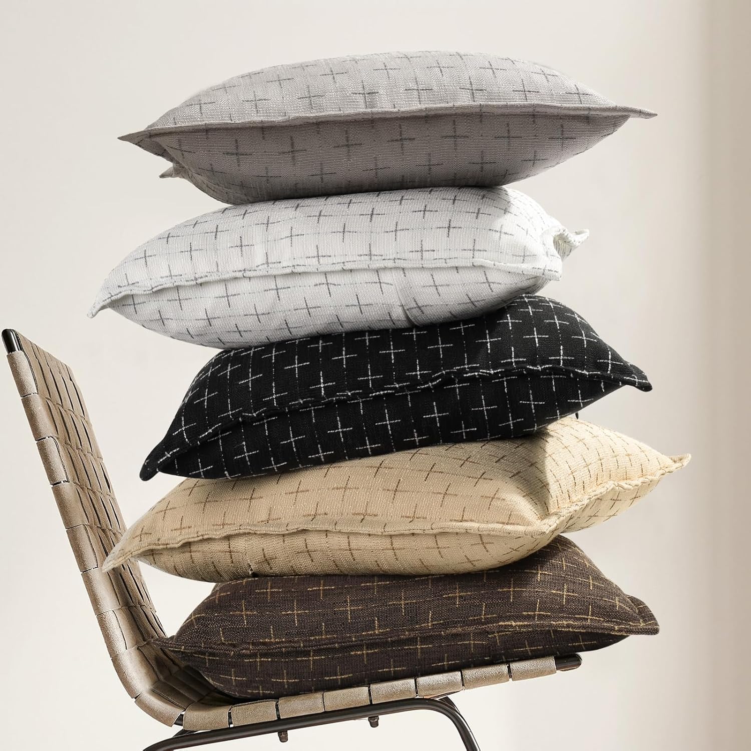 - 1.【Premium Polyester Material】: The couch pillows are made from thick soft polyester, which is resistant to wrinkles and stretching. Our decorative pillow cover offers a comfortable and supersoft feel, crafted textures, and unique patterns creating a cozy and warm atmosphere in your living room.