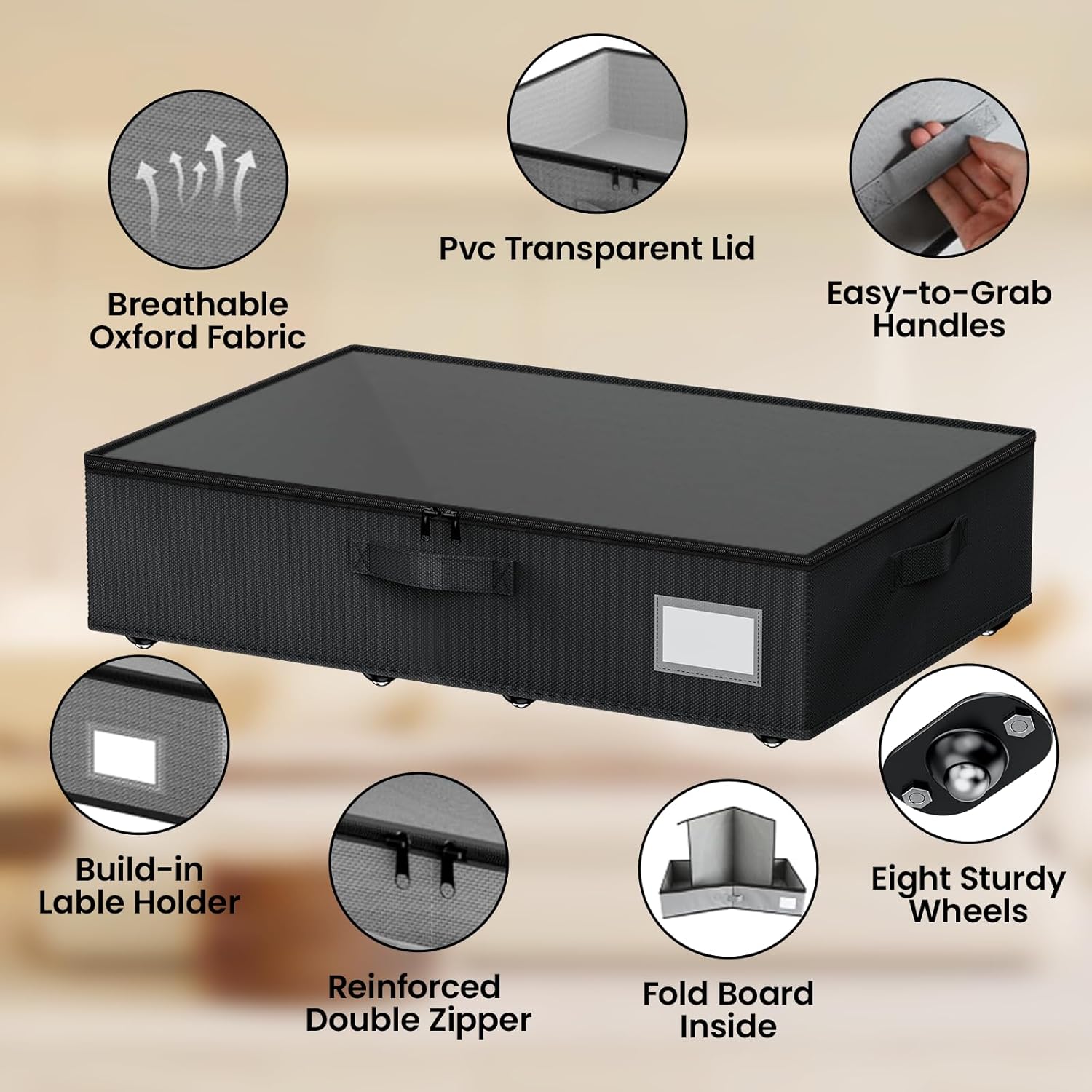 - 【TRANSPARENT LID DESIGN】: The under bed storage with clear lids, this storage solution allows easy identification of contents without opening, reducing clutter and misplaced items, The design keep out moisture, dust, and dirt, maintaining a clean and organized space