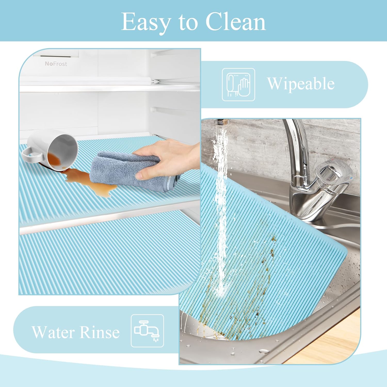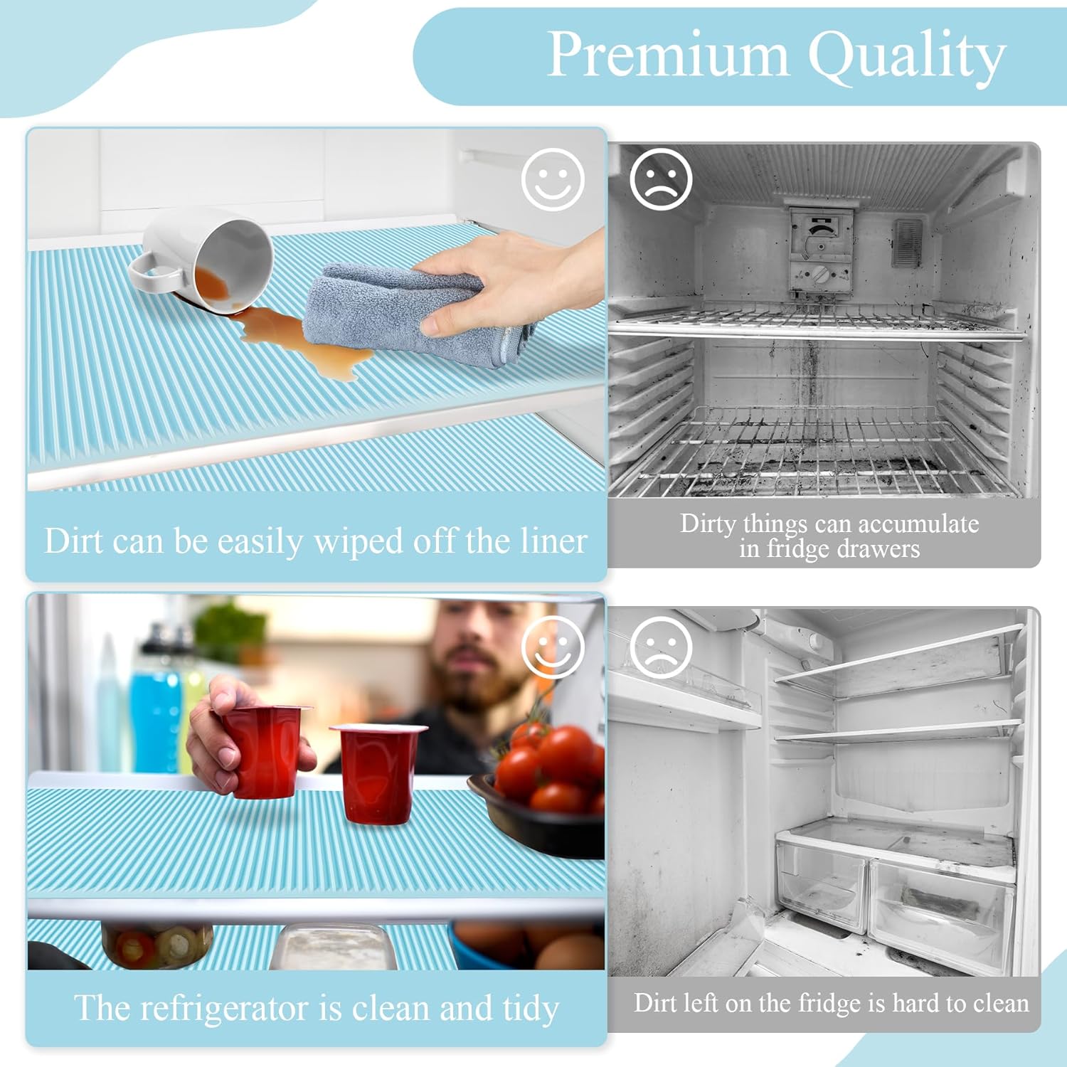 - 【Easy to clean】: If the fridge drawer liners is stained, you can easily wipe it with a towel or paper towel, or you can remove the fridge mats and clean it directly. After use, the mat only needs to be wiped with a cloth or rinsed with water, which is reusable and dries quickly.