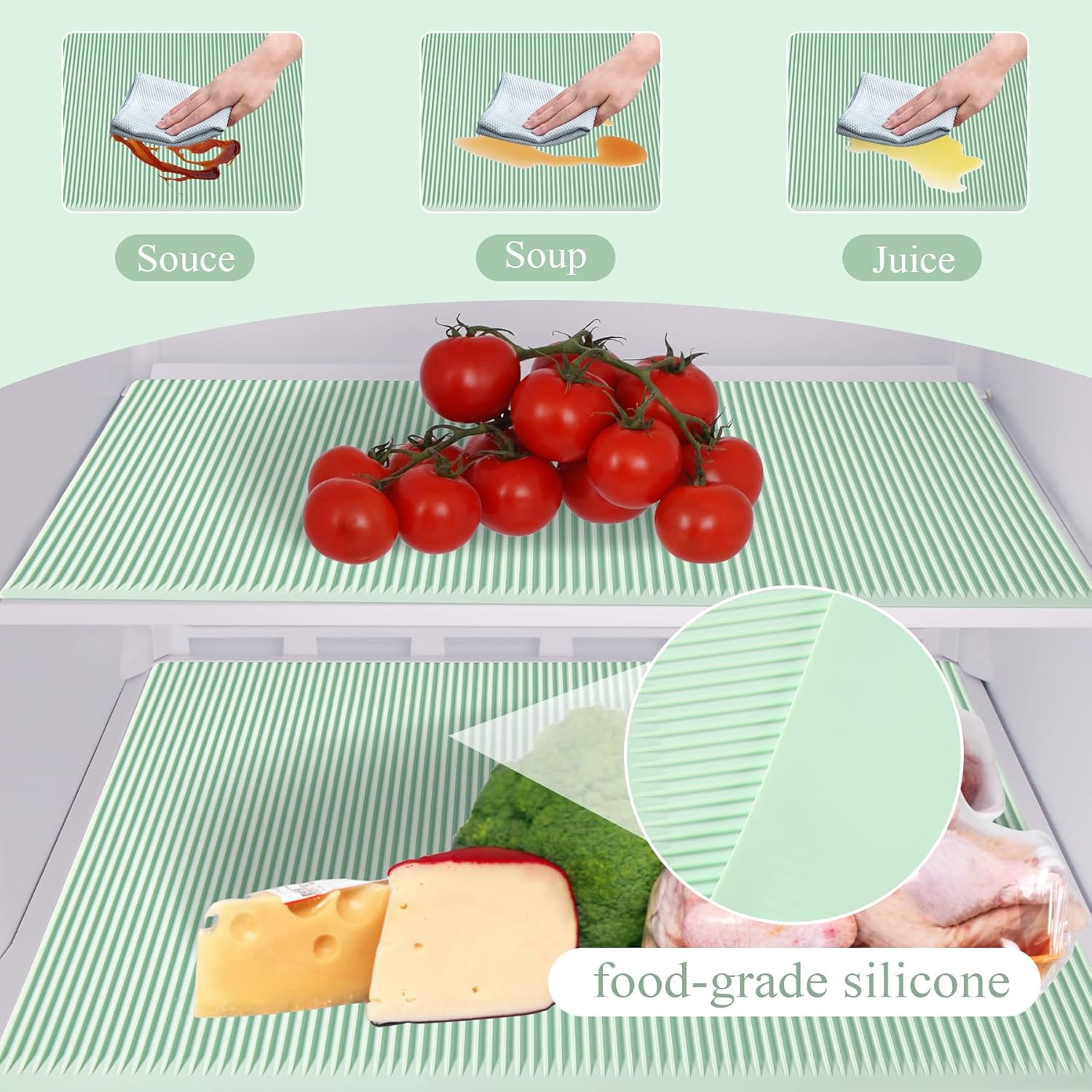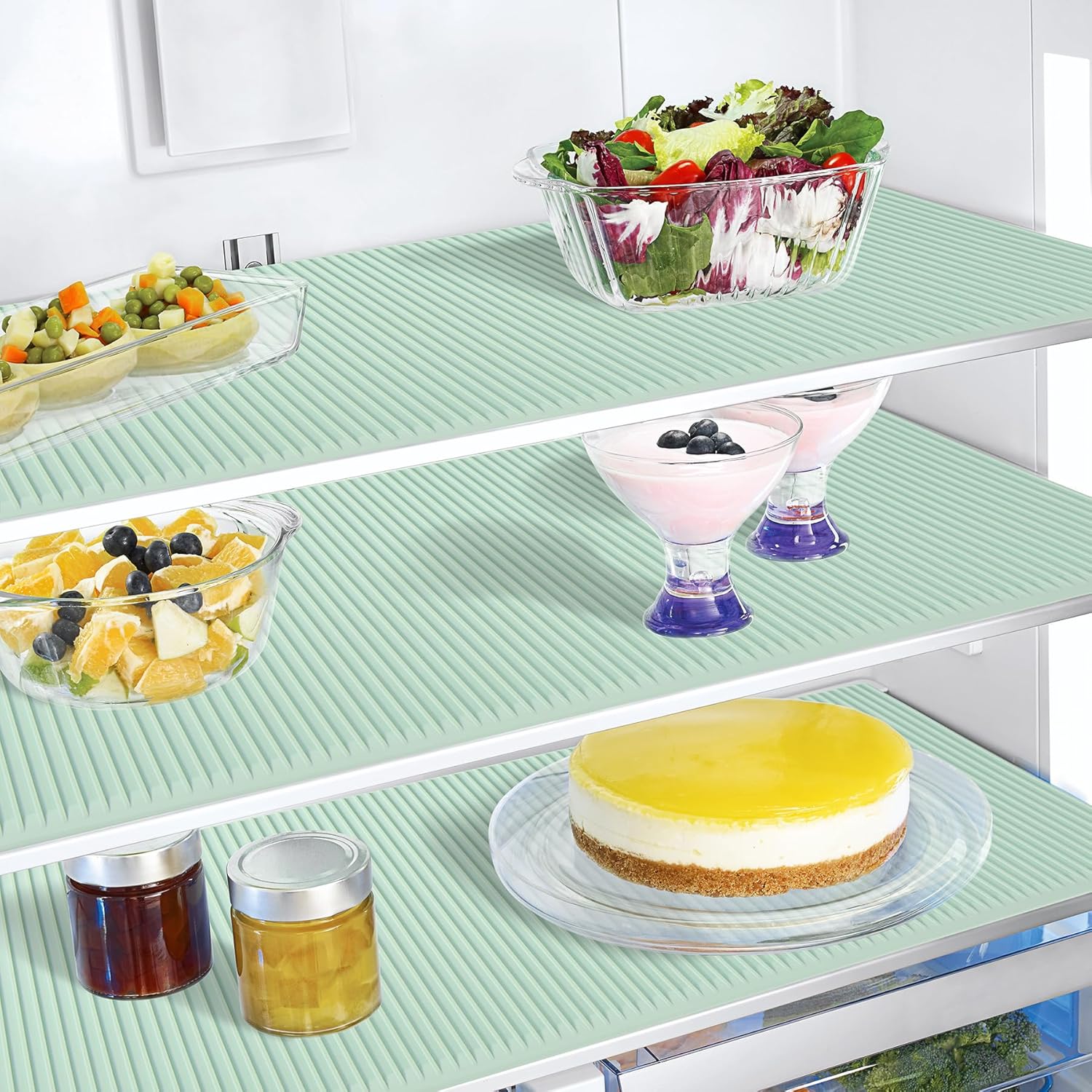 Non-Slip Silicone Refrigerator Liners for Shelves, Reusable Washable Fridge Shelf Drawer Liners, Cuttable Waterproof Oilproof Fridge Liner for Glass Shelve Kitchen Cabinet Drawer Mats (Green, 1 Pack)