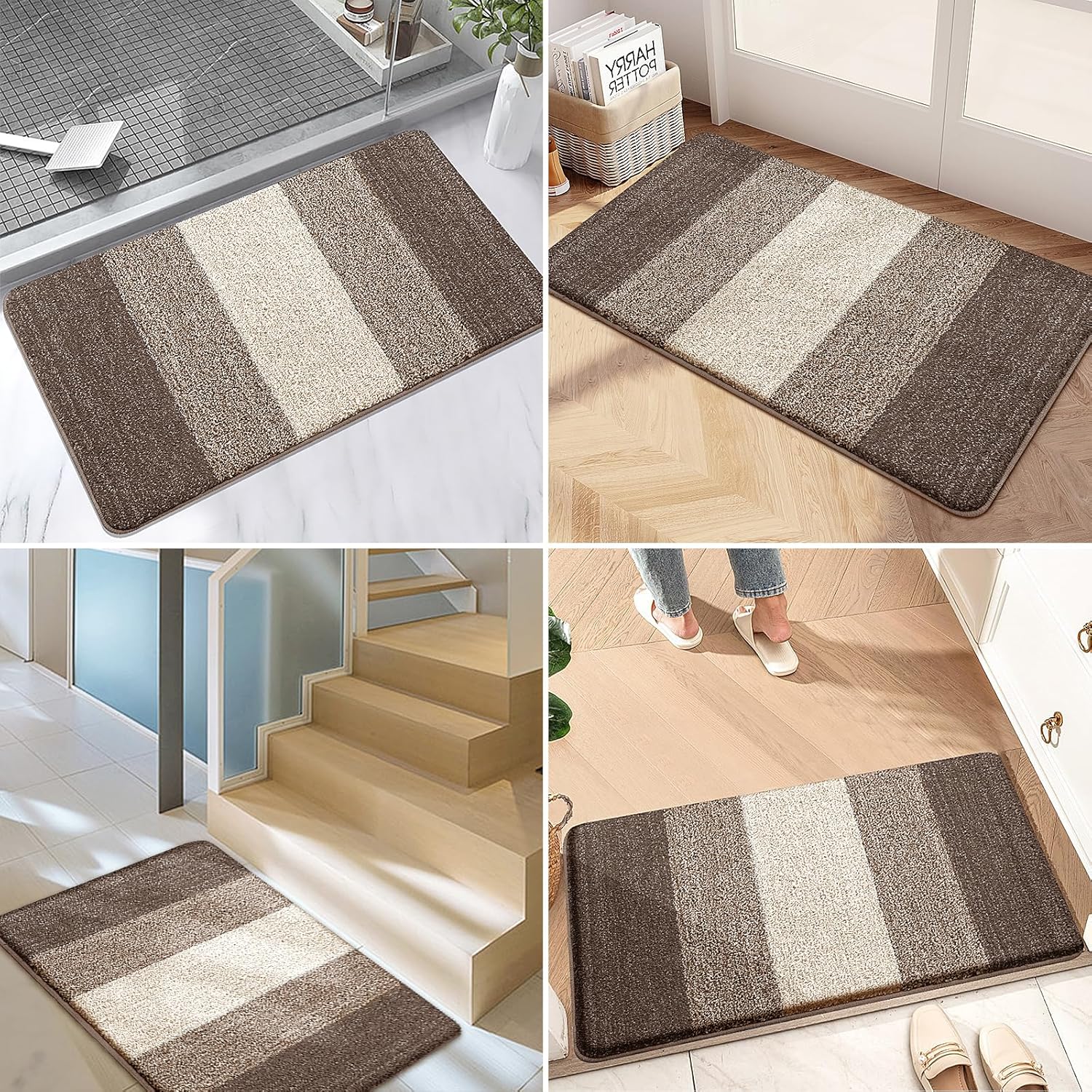 - LOW PROFILE & VERSATILE: The 0.4 inch thickness makes our doormat suitable for most entrances. Doors can be opened and closed smoothly without fear of tripping. The fashion design and multiple options can be widely used indoor and outdoor, kitchen, front door, entrance, patio, garage, laundry, bathroom, etc.