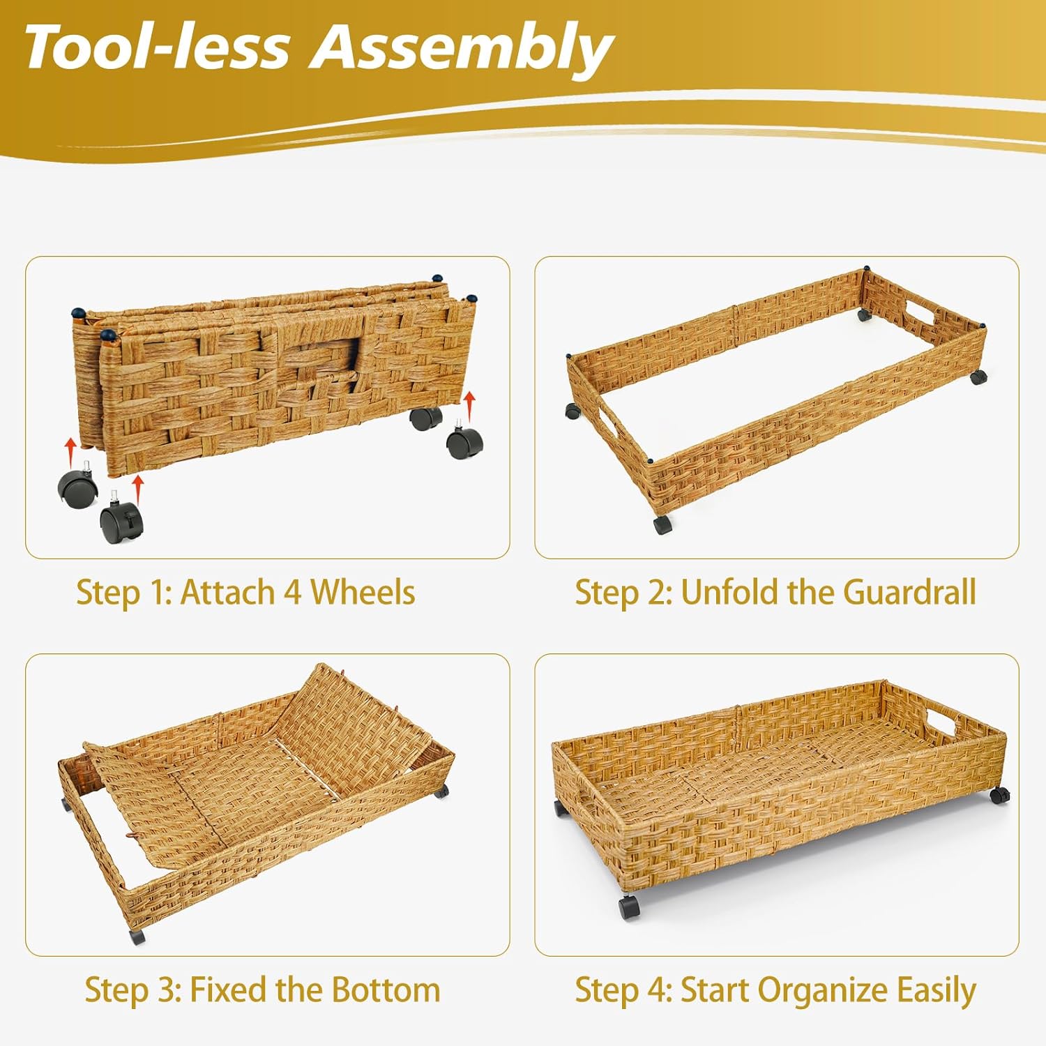 - BREATHABLE & DURABLE: Our under bed storage on wheels is made of handmade rattan weaving, which ensures air ventilation to keep your seasonal garments dry and fresh. The toughness of rattan makes underbed storage more durable.