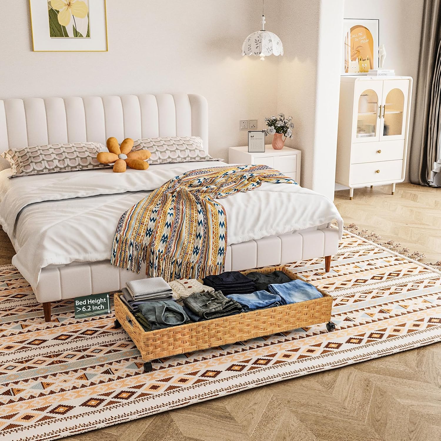 - BOHO DECOR MUST-HAVE: Farmhouse to urban chic.Rattan under the bed storage bin elevate hidden organization. 90% of buyers rated them 'perfect storage display,' praising their functionality while maintaining a stylish boho aesthetic.