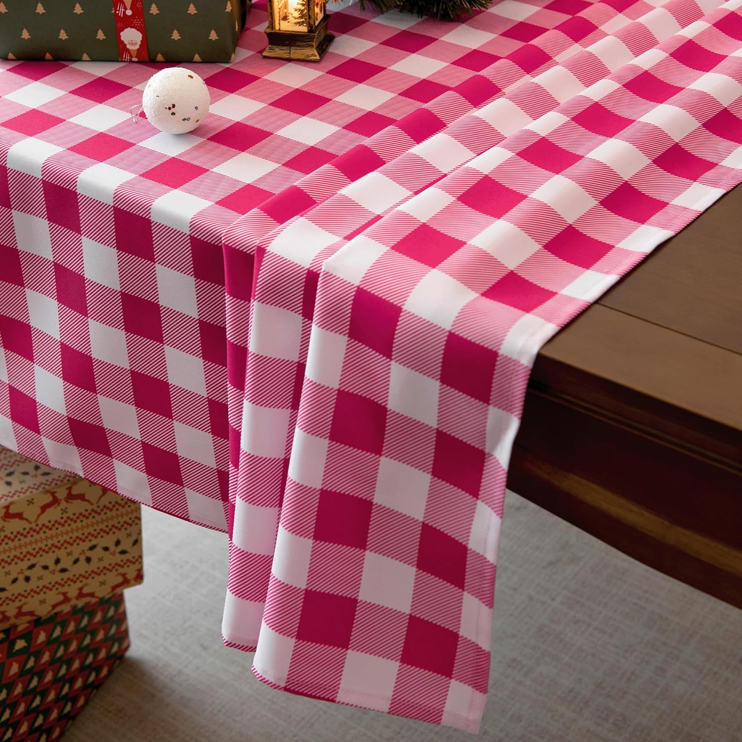 - CLASSIC GINGHAM CHECKERED DESIGN: Our checked tablecloth features a pattern of small, evenly spaced checks in two contrasting colors, often white and another color. The classic gingham plaid pattern for table cloth is a timeless and versatile choice