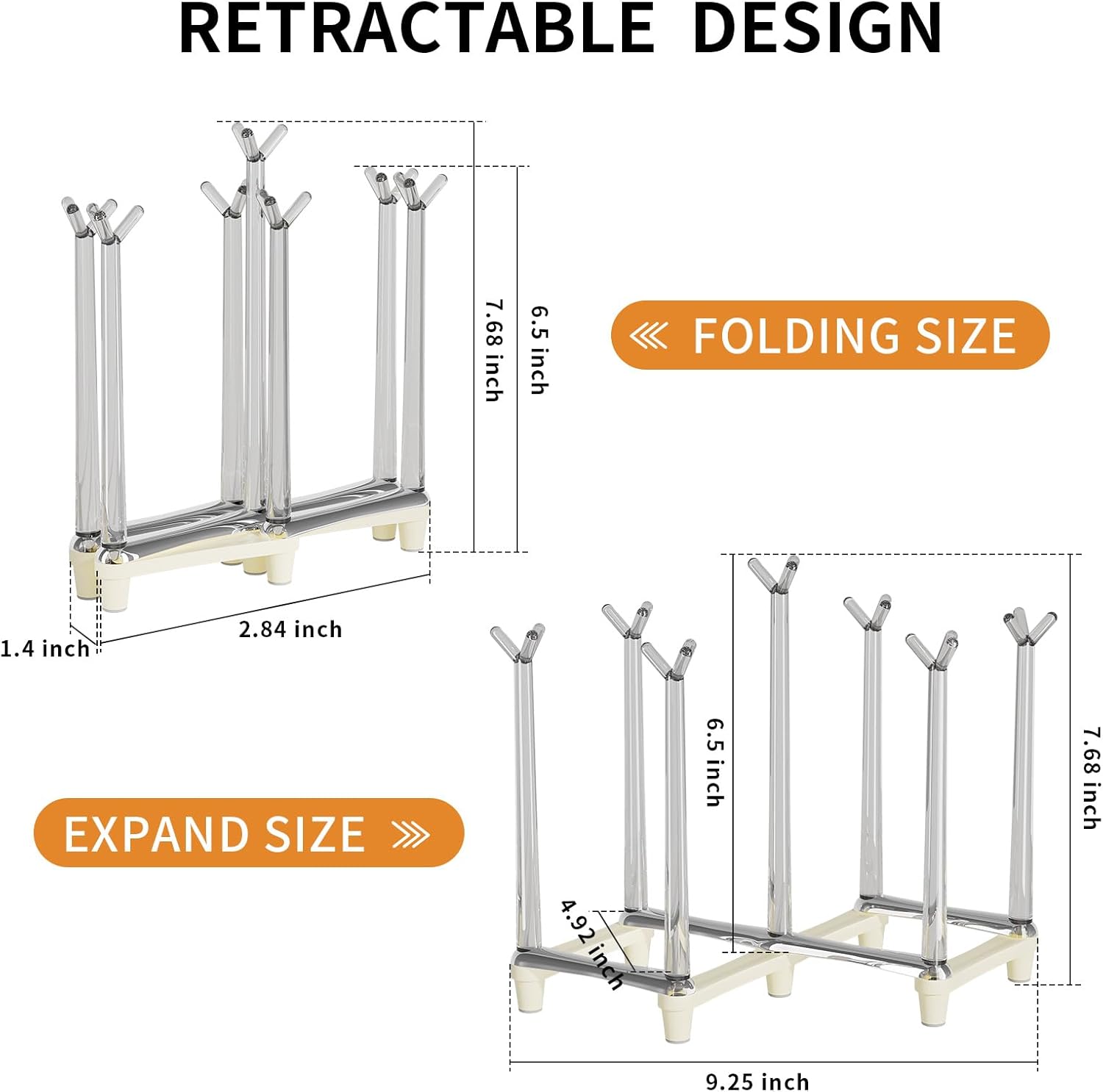 Marbrasse Retractable Cup Drying Rack, Drinking Glass and Sports Bottle Drainer Stand, Plastic Bag Dryer with Non-Slip Bottom for Kitchen Countertop - White